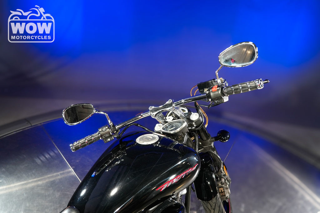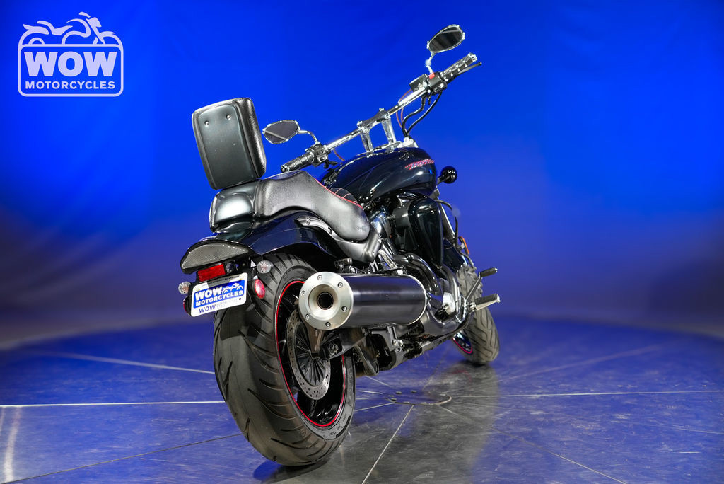 2003 YAMAHA XV1700 WARRIOR,We know what you’re thinking. Is the Warrior a cruiser or a sportbike? The answer is yes… Yes, that’s a pushrod, air-cooled, fuel injected, 102 cubic inch (1670cc) V-twin — that’ll blow your socks clean off. You’ll appreciate the Warrior’s superior power-to-weight ratio when you dump the clutch and that 200-section rear tire hooks up. And yes, that’s a lightweight aluminum frame with a 41mm inverted fork, monoblock brake calipers and sticky performance tires on three-spoke alloy wheels supporting this welterweight Road Star. Can you guess why the Warrior was Motorcyclist Magazine’s Cruiser of the Year for `02? Simply put, “It stops and turns and soaks up the bumps better than anything else in cruiserdom.? Total performance. Does anybody make chaps with knee sliders? ENGINE: Air-cooled 48° V-twin; pushrod OHV, 4 valves/cyl. DISPLACEMENT: 1670cc BORE X STROKE: 97mm x 113mm COMPRESSION RATIO: 8.3:1 FUEL DELIVERY: 40mm Mikuni CV w/throttle position sensor IGNITION: TCI TRANSMISSION: 5-speed; multiplate wet clutch FINAL DRIVE: Belt SUSPENSION/FRONT: 41mm inverted fork; 5.3 in. travel SUSPENSION/REAR: Single shock, adjustable preload & rebound damping; 4.3 in. travel BRAKES/FRONT: Dual 298mm discs w/3-piston calipers BRAKES/REAR: 282mm disc w/2-piston caliper TIRES/FRONT: 120/70-18 radial TIRES/REAR: 200/50-17 radial LENGTH: 95.7 in. WIDTH: 31.3 in. HEIGHT: 44.1 in. SEAT HEIGHT: 27.8 in. WHEELBASE: 65.6 in. RAKE: 29° TRAIL: 4.5 in. GUARANTEED FUEL CAPACITY: 4.2 gal. ENGINE OIL CAPACITY: 4.5 qt. DRY WEIGHT: 639 lbs.