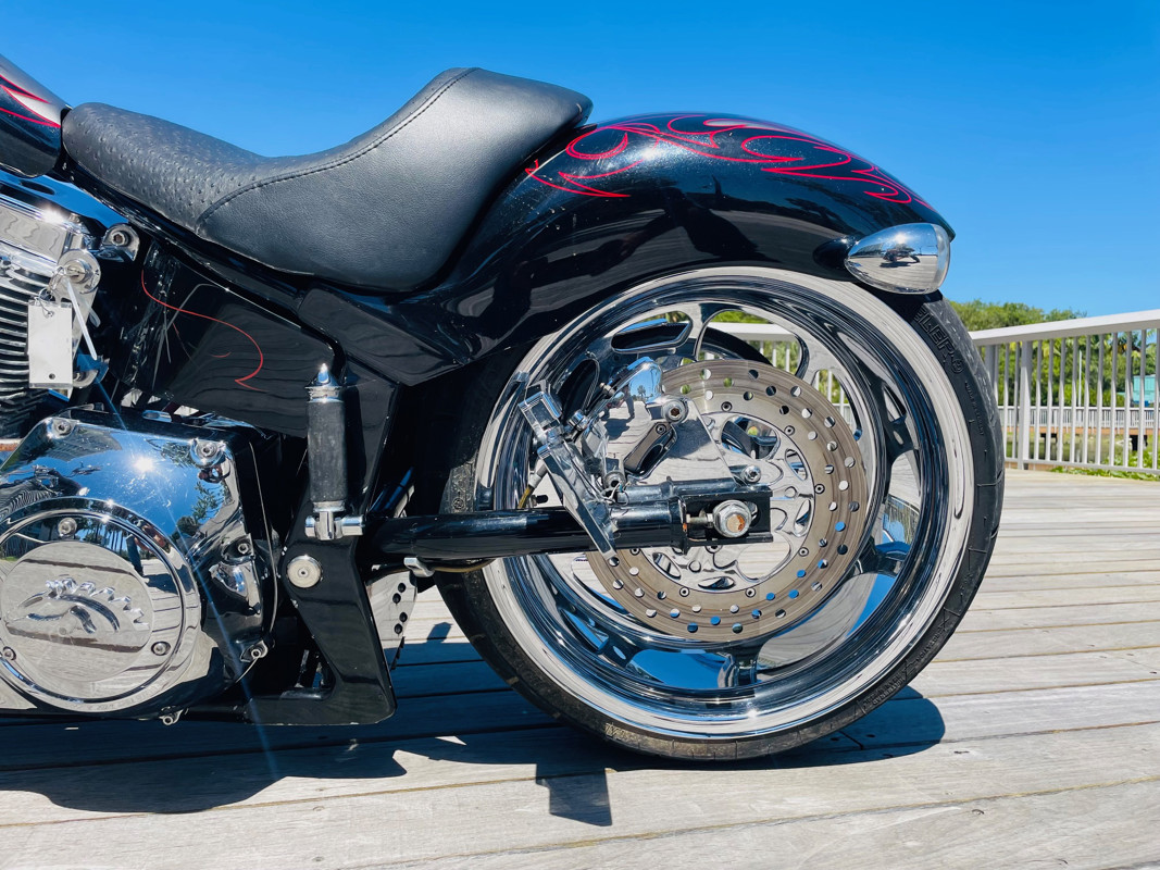 This is an extremely nice and well-built chopper. The bike is excellent in almost all aspects. Beautiful paint, super nice running 111ci motor, shifts easy through the 6-speed tranny. I had the bike up to 75Mph in no time and no wiggle just asking for more. This bike is equipped with Air-Ride suspension ($1,500 already installed)