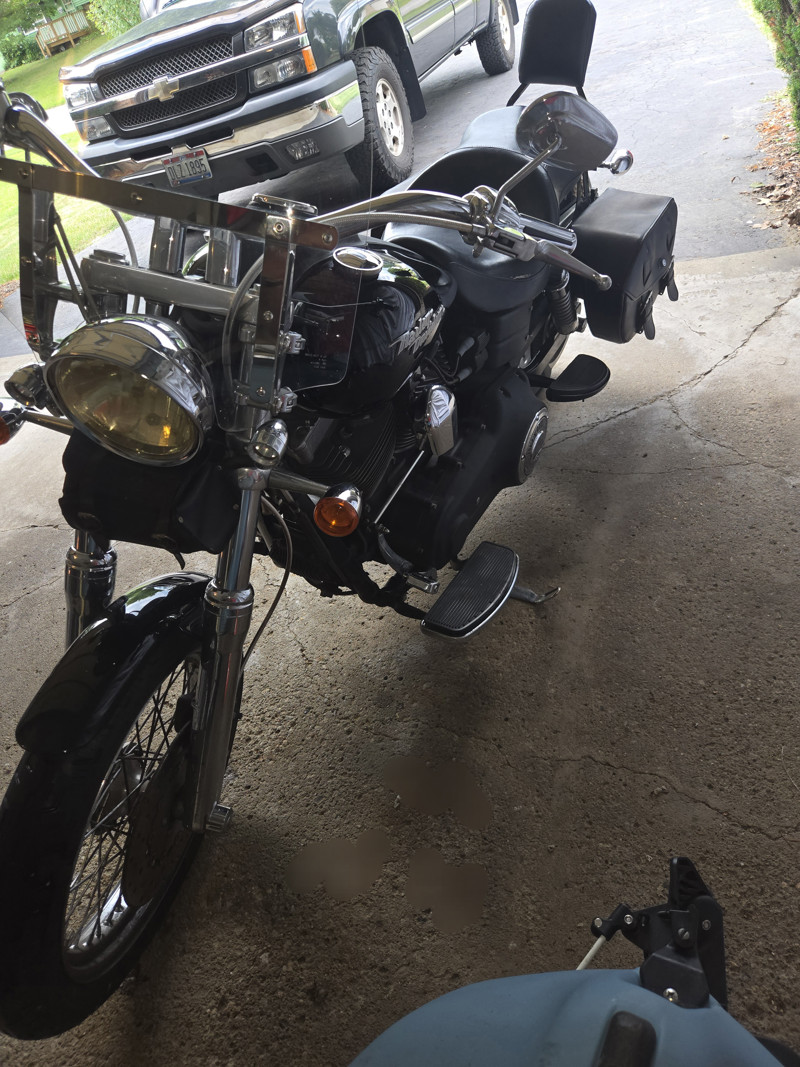 I'm only sell my bike because of medical issues. This motorcycle is one you'll fall in love with when you see it. Besides the black color against the crome front end anf vancenhime short pipes it has a full windshield shield, new foot rests in the back, back rest and saddle bags.