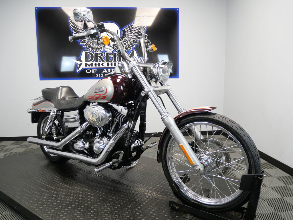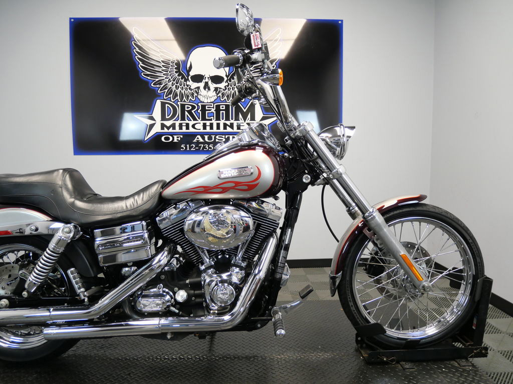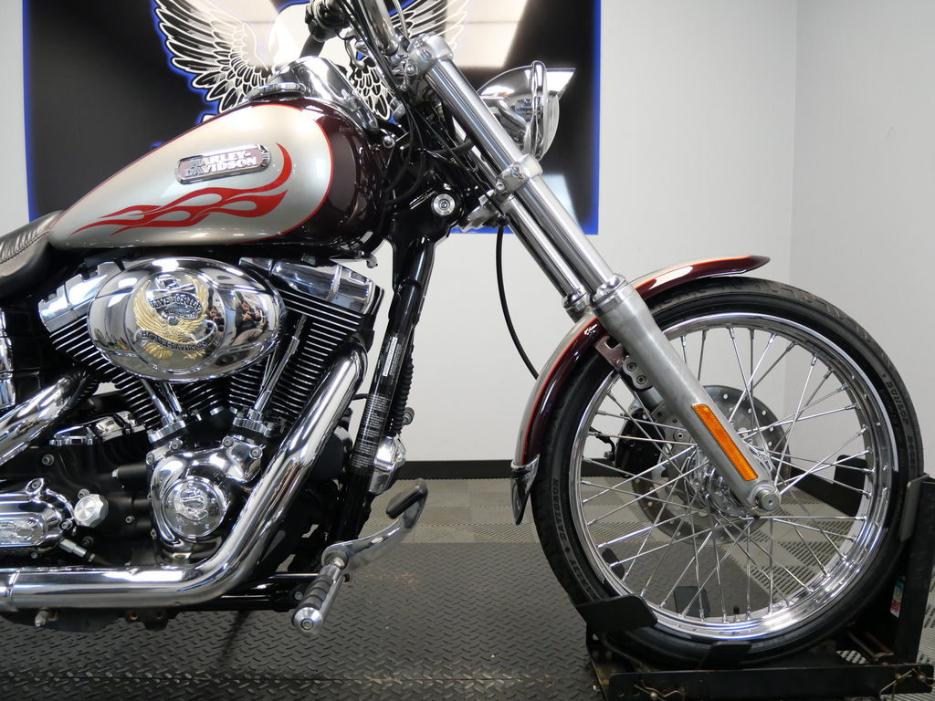 *BOOK VALUE IS $8,161 SHIPPING, LEASING, FINANCING AND EXTENDED WARRANTY MAY BE AVAILABLE! YOU ARE LOOKING AT A 2007 HARLEY DAVIDSON DYNA WIDE GLIDE (FXDWG) WITH 37,894 MILES ON IT. IT IS BLACK CHERRY PEARL AND PEWTER PEARL IN COLOR AND POWERED BY A 1584CC (96") FUEL INJECTED ENGINE AND 6 SPEED TRANSMISSION. THE BIKE COMES WITH 1 KEY, 1 FOB, AND FACTORY SECURITY SYSTEM. THERE ARE SOME EXTRAS ON THE BIKE WHICH INCLUDE VANCE & HINES SLIP-ON MUFFLERS ($399.95), STAGE 1 AIR INTAKE ($139.95), AIR CLEANER BADGE ($43.95), TIMER COVER ($28.95), GRIPS ($79.95), MASTER CYLINDER COVER ($39.95), DERBY COVER ($58.95), DRIVER/PASSENGER PEGS ($158.95), SHIFTER PEG ($19.95), AND COMBINATION ANALOG SPEEDOMETER/TACHOMETER ($399.95). THERE ARE NO SCRATCHES, DENTS, OR DINGS THAT I CAN FIND WITH THE EXCEPTION OF TOUCH UPS ON THE FRONT FENDER, TANK, AND REAR FENDER. THE CHROME AND ALUMINUM ARE IN GOOD CONDITION WITH THE EXCEPTION OF OXIDATION ON THE FORK LOWERS AND FLAKING ON THE MASTER CYLINDER. THE TIRES HAVE GOOD TREAD LEFT ON THEM.