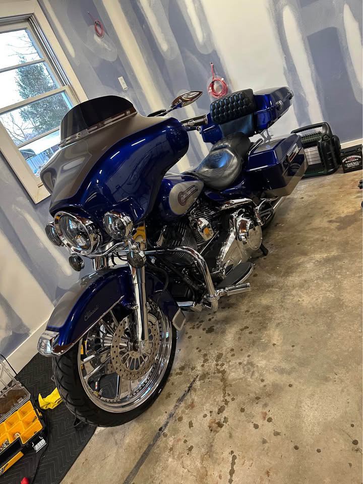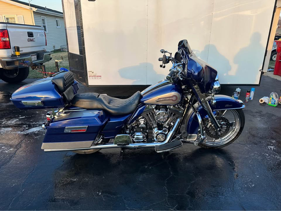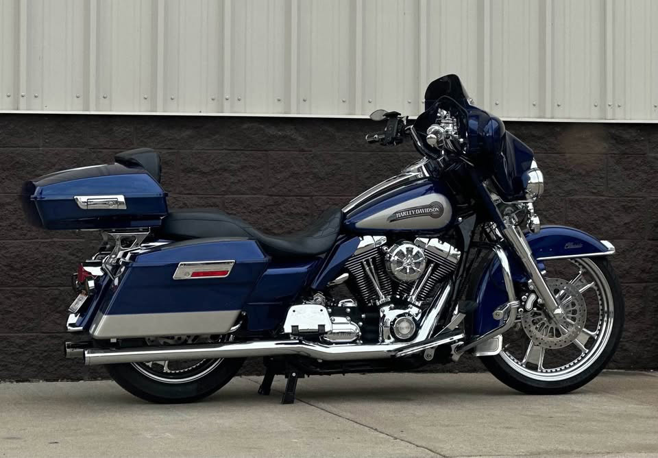 2007 clean and classic Harley Davidson electric glide classic. 96 motor, power commander dyno tuned, Haley oil cooler system. 6 speed transmission, 21’ front and 18’ rear aftermarket wheels. Progressive front suspension lowered, chrome lowers, Rear dirty air ride system ?with AF kustoms center stand and 2 switch over horn switches housing. Advanblack tour pack, custom seat and backrest pad. Painted inner fairing with upgraded Metra inner fairing with Sony apple CarPlay XM satellite, etc. 10’ chrome handlebars with chrome controls and covers. LED headlights and fog lights upgraded. Vance and Hines classic Exhaust.
