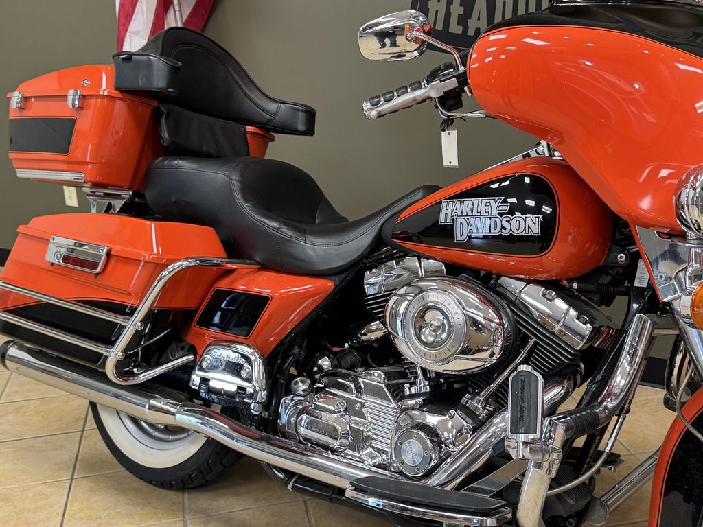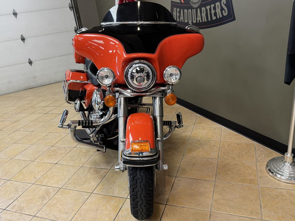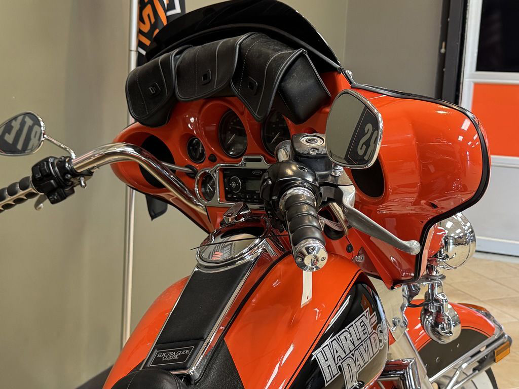 The FLHTC Electra Glide® Classic has the features of a full dresser touring motorcycle while maintaining opportunity for plenty of customizing. The addition of the Twin Cam 96™ engine and 6-speed Cruise Drive transmission make the Electra Glide® Classic a powerful touring machine with a passenger and cargo. Reduced clutch lever effort, an adjustable Tour-Pak, comfortable passenger seating area and 40-watt Advanced Audio System by Harman/Kardon surround the rider and passenger in comfort and style. The Electra Glide® Classic with standard ESPFI provides even throttle response and engine performance in various weather and elevation conditions. Full engine instrumentation, additional fender and saddlebag trim, locking saddlebags and chrome engine covers are standard. Offered in three solid and four two-tone color options.
