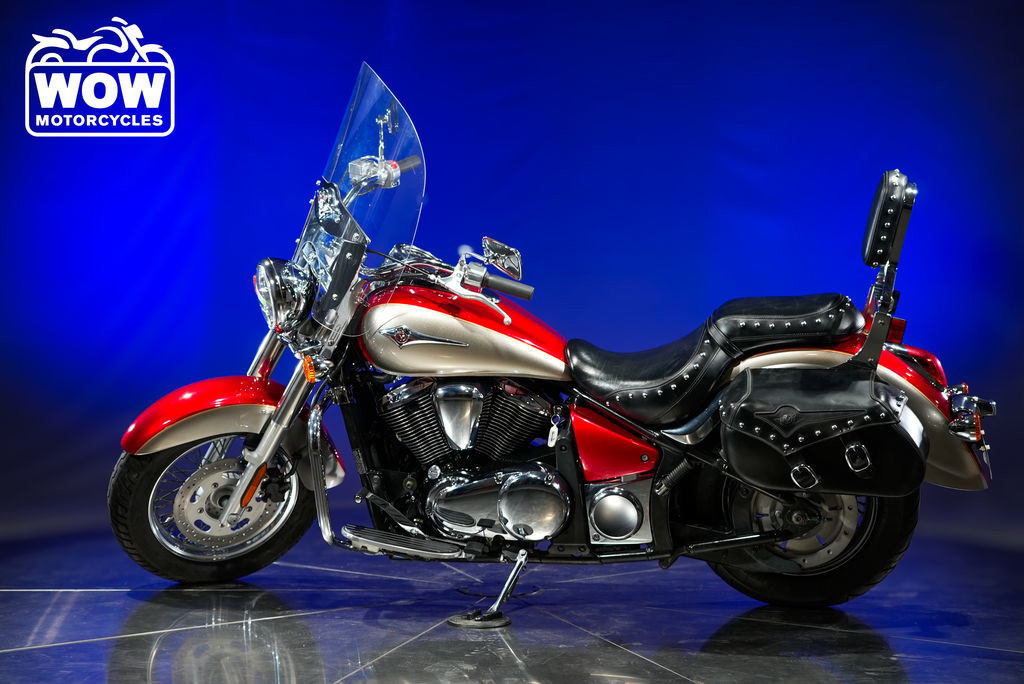 KAWASAKI’S VULCAN 900 CLASSIC LT OFFERS LUXURY CRUISING FEATURES IN AN AFFORDABLE MID-SIZE PACKAGEFully-loaded cruiser is ready for open road adventuresThe Kawasaki Vulcan 900 Classic LT motorcycle takes the class-leading attributes of its Vulcan 900 Classic sibling and ups the ante with additional custom touring features and enhanced style. Kawasaki accessorizes the Vulcan 900 LT with saddlebags, a special seat, passenger backrest and an adjustable windshield. The only add-on that doesn’t show-up on the showroom hang-tag is the riding enjoyment that this new Vulcan addition will provide its owners.This mid-size entry from Kawasaki not only delivers the same excellent riding characteristics as the Vulcan 900 Classic –featuring a category-leading 903cc engine displacement combined with “big-bike? look and feel– but does it with eye-catching features for riders that think touring represents the ultimate get-away.The stylish saddlebags are made of reinforced top grain cowhide that has been carefully selected to minimize leather flaws and deep-dyed so the finish can’t be scraped off. These perfectly sized bags provide a slant-top opening, fastened with two 1.5-inch wide leather straps that feature chrome buckles and quick release stealth fasteners. Rounding out the look of these bags is an embossed Vulcan logo on the reinforced, dual panel lids, and chrome plated brass stud accents. Helping to protect both the bags and their contents are metal reinforced upper edges to help maintain shape, and rolled and riveted top lids to help keep unwanted moisture out.The rider’s seat and passenger backrest combine to offer both comfort and a look that allows the Classic LT to take its place among the most stylish motorcycles on the highway. The seat is detailed with chrome plated brass studs to match the bags, while the classic, tombstone-shaped passenger backrest sports identical studding. In addition to comfortable seating, this long, low cruiser offers some serious wind protection; thick, optically correct acrylic plastic is used in a windscreen that’s shaped to smooth airflow around the rider.In addition to appreciating the 900 Classic LT’s good looks, riders will find themselves enjoying a ride that was previously found only on larger cruisers. Based on much of what has propelled acceptance of the Kawasaki’s Vulcan 2000, the Vulcan 900 models deliver exceptional roll-on acceleration, easy maneuverability, and performance the equal of larger displacement competitors.The Vulcan 900 Classic LT employs a low-maintenance belt drive to keep the overall weight down and improve rear-end styling. Any mention of rear-end styling has to include this unit’s use of a large, 180mm wide rear tire, and largest in the category. The beefy, “big-bike? look inherited with the larger tire adds to the guttural, classic V-twin sound that is produced by the use of a single-pin crankshaft. Both look and sound evoke the feel of a much larger motorcycle.The Vulcan 900’s larger look and feel need not exclude any potential rider. The low seat height makes it accessible for shorter riders and its tapered and studded seat design flows comfortably into the tank. The lower chassis rails also provide a narrowed shape, which makes it comfortable for all riders.Equally at home around town or when the open road calls, this motorcycle is built for hour after hour of touring pleasure. The combination of wide handlebars and an ideal relationship between the bars, seat, and floorboards offer an extremely comfortable mount for any motorcyclist.The Vulcan 900 Classic LT is available in the following two-tone color combinations: Candy Fire Red / Metallic Titanium or Ebony / Galaxy Silver. With either selection, the Classic LT owners will be noticed by everyone they pass along the highway.Engine: 4-Stroke, liquid-cooled, SOHC, 4-valve per cylinder, V-twinDisplacement: 903cc / 55.1 cu.in.Bore x stroke: 88.0 x 74.2mmCompression ratio: 9.5:1M