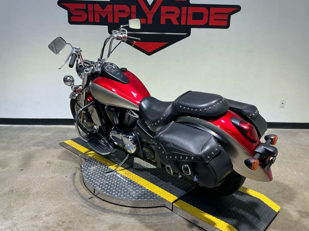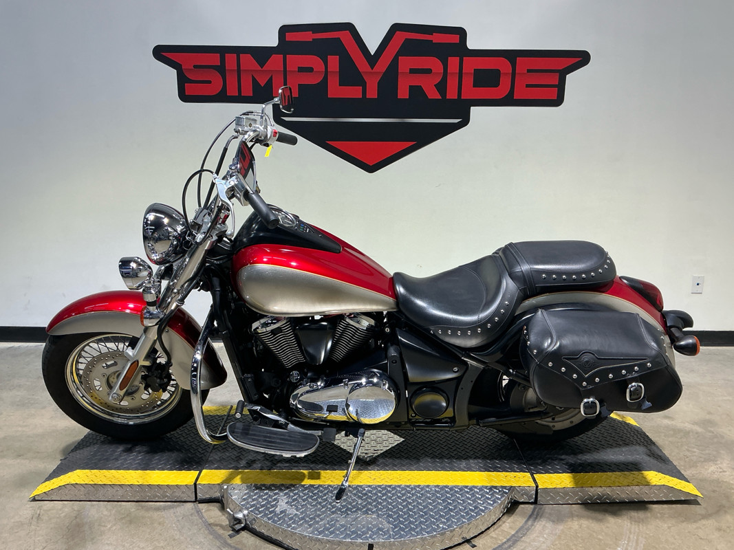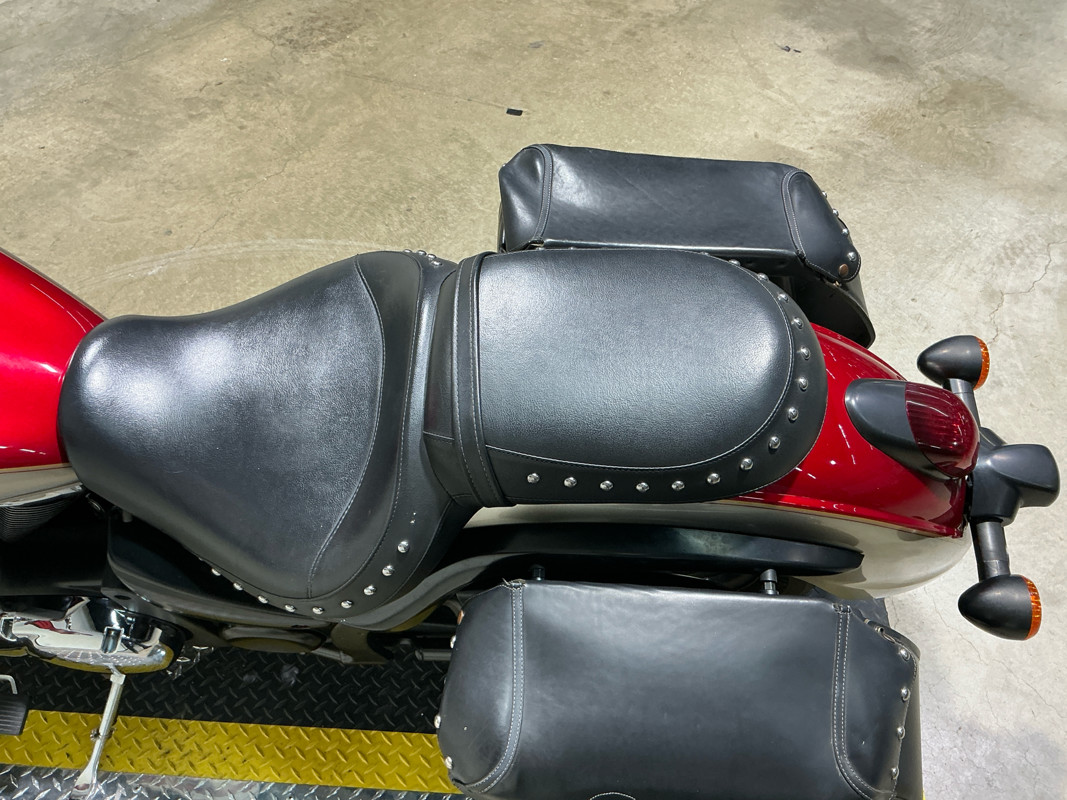 KAWASAKI’S VULCAN® 900 CLASSIC LT OFFERS LUXURY CRUISING FEATURES IN AN AFFORDABLE MID-SIZE PACKAGE. Fully-loaded cruiser is ready for open road adventures. The Kawasaki Vulcan® 900 Classic LT motorcycle takes the class-leading attributes of its Vulcan 900 Classic sibling and ups the ante with additional custom touring features and enhanced style. Kawasaki accessorizes the Vulcan 900 LT with saddlebags, a special seat, passenger backrest and an adjustable windshield. The only add-on that doesn’t show-up on the showroom hang-tag is the riding enjoyment that this new Vulcan addition will provide its owners. This mid-size entry from Kawasaki not only delivers the same excellent riding characteristics as the Vulcan 900 Classic –featuring a category-leading 903 cc engine displacement combined with "big-bike" look and feel– but does it with eye-catching features for riders that think touring represents the ultimate get-away. The stylish saddlebags are made of reinforced top grain cowhide that has been carefully selected to minimize leather flaws and deep-dyed so the finish can’t be scraped off. These perfectly sized bags provide a slant-top opening, fastened with two 1.5-inch wide leather straps that feature chrome buckles and quick release stealth fasteners. Rounding out the look of these bags is an embossed Vulcan logo on the reinforced, dual panel lids, and chrome plated brass stud accents. Helping to protect both the bags and their contents are metal reinforced upper edges to help maintain shape, and rolled and riveted top lids to help keep unwanted moisture out.