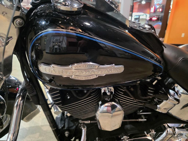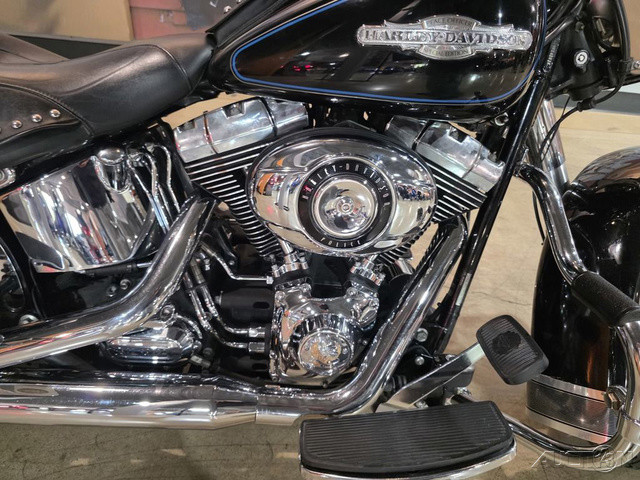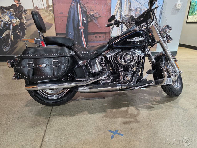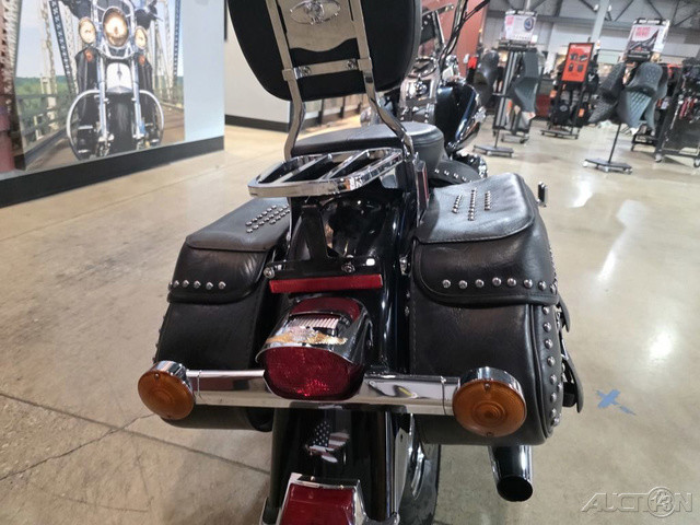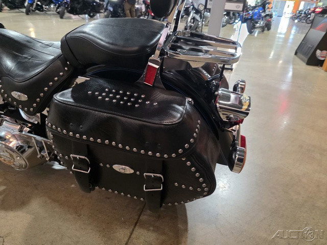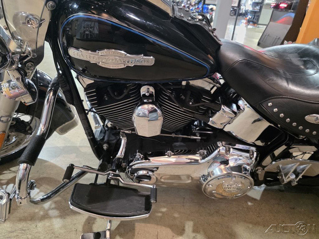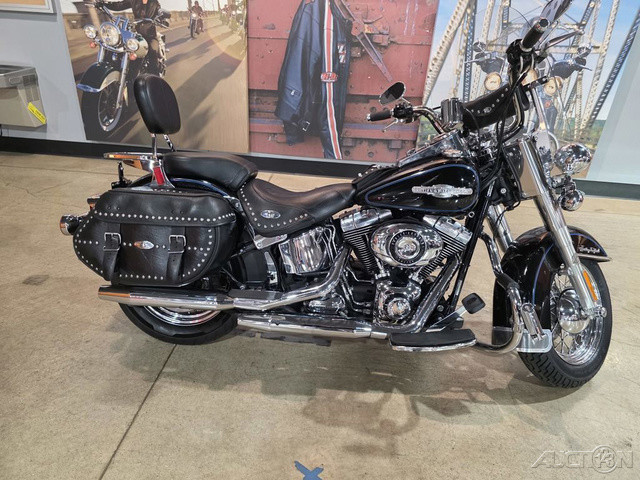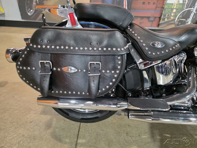 2008 Harley-Davidson® Heritage Softail®The Heritage Softail® Classic offers long-range touring comfort and nostalgic, dresser style with big FL front end, chrome passing lamps, studded leather saddle bags and a full windshield. A smooth ride and comfortable position carry the Heritage Softail rider far beyond the horizon. The passenger seat and the windshield can be quickly detached for laid-back cruising.