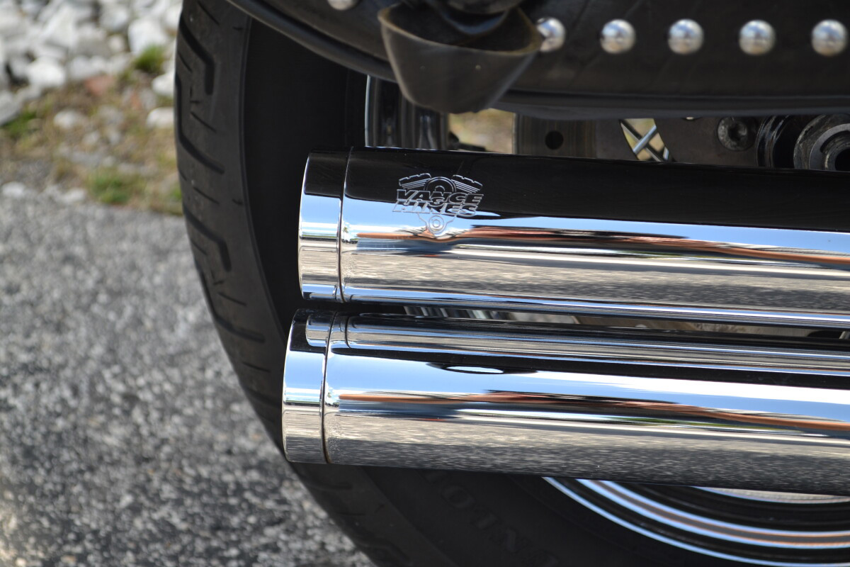 VANCE AND HINES LONG SHOT EXHAUSTSTAGE 1 AIR CLEANERCHROME PASSENGER FLOORBOARDSCHROME SWITCH HOUSINGSCHROME HEADLIGHT VISORCHROME PASSING LAMP VISORSCHROME FRONT AXLE NUT COVERSCHROME REGULATOR COVERHIGHWAY PEGS