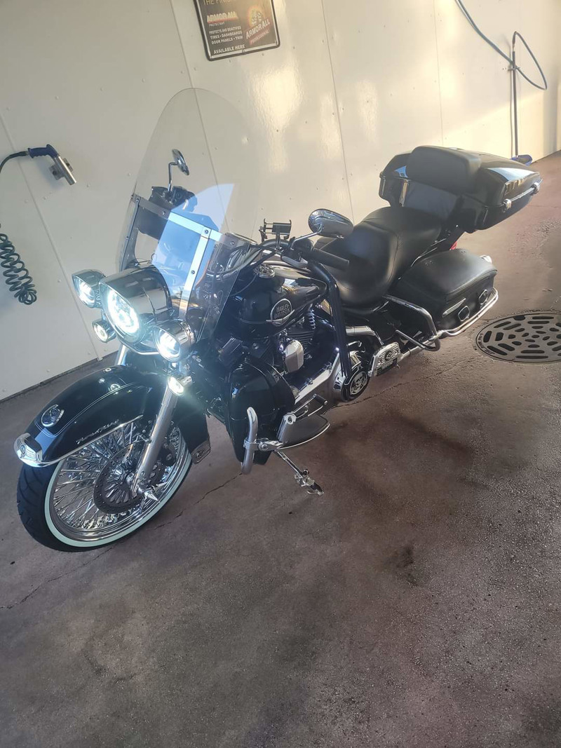 Fully loaded, 2nd owner, never dropped, Factory ABS, Cruise Control & Alarm, 21" front wheel, lower fairings, chopped tour pak, Pioneer Bluetooth Speaker System, all lights converted to LEDs, frame lights. Many extras, very good condition, lots of chrome.