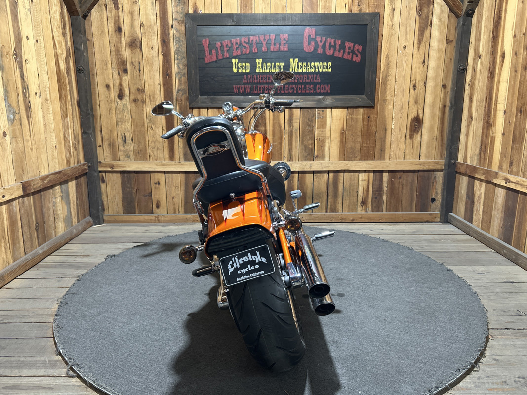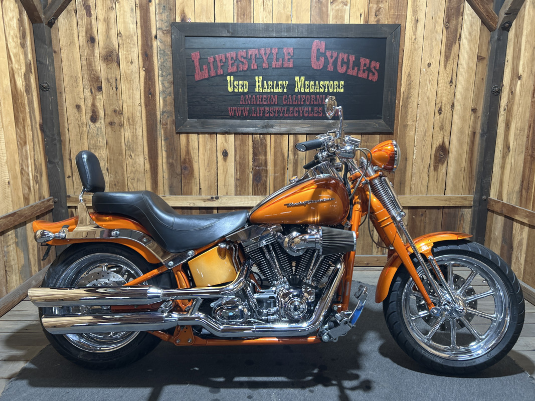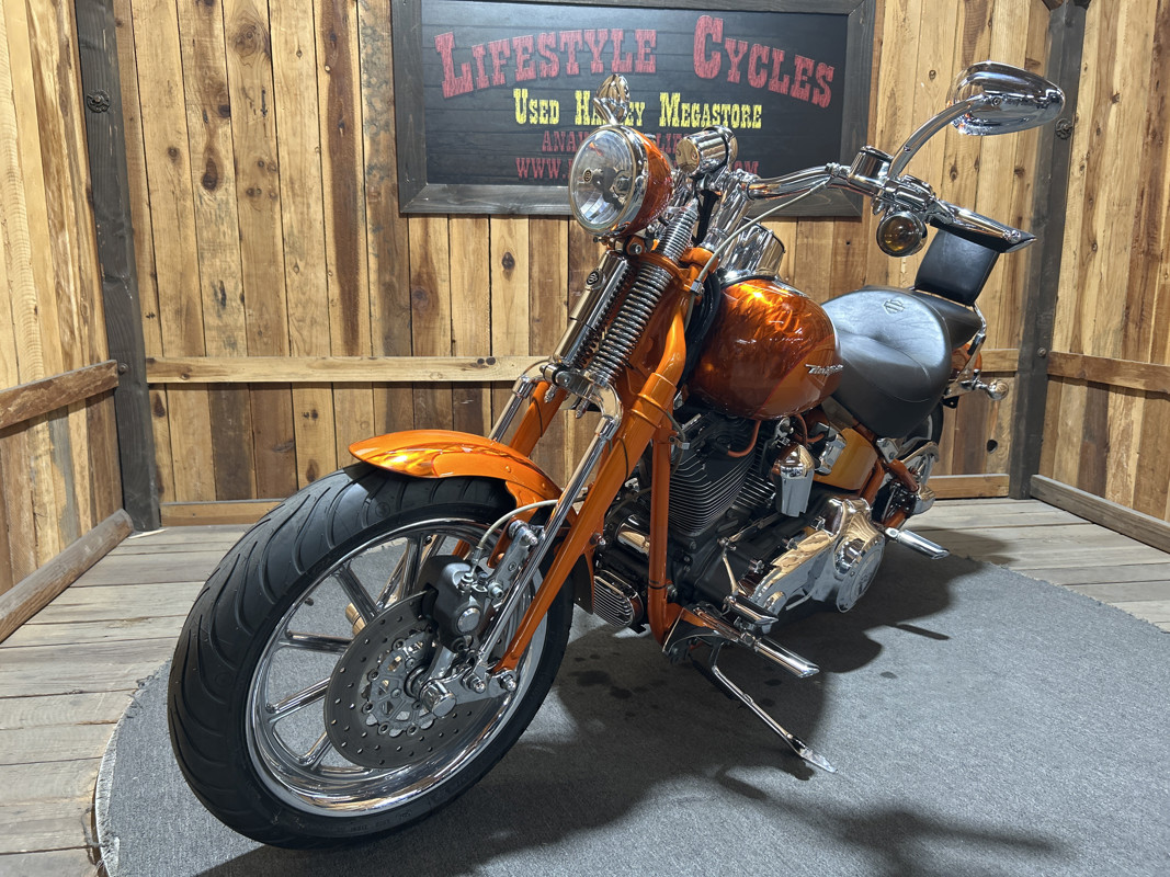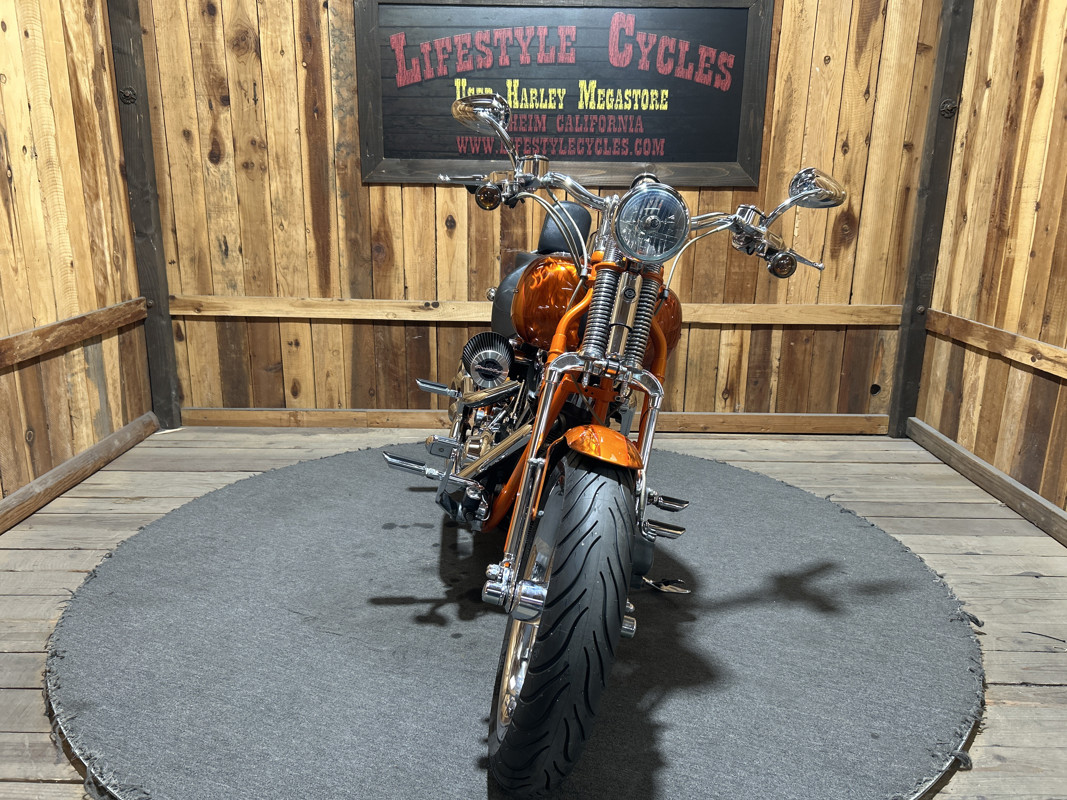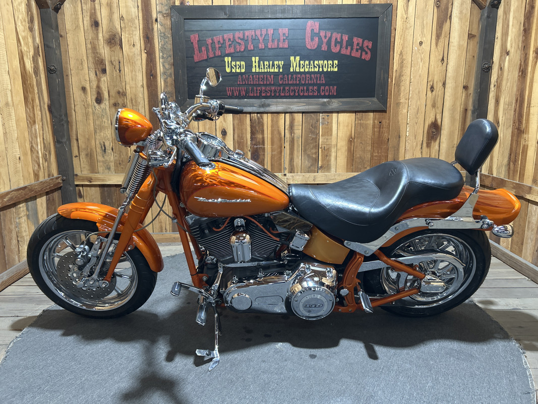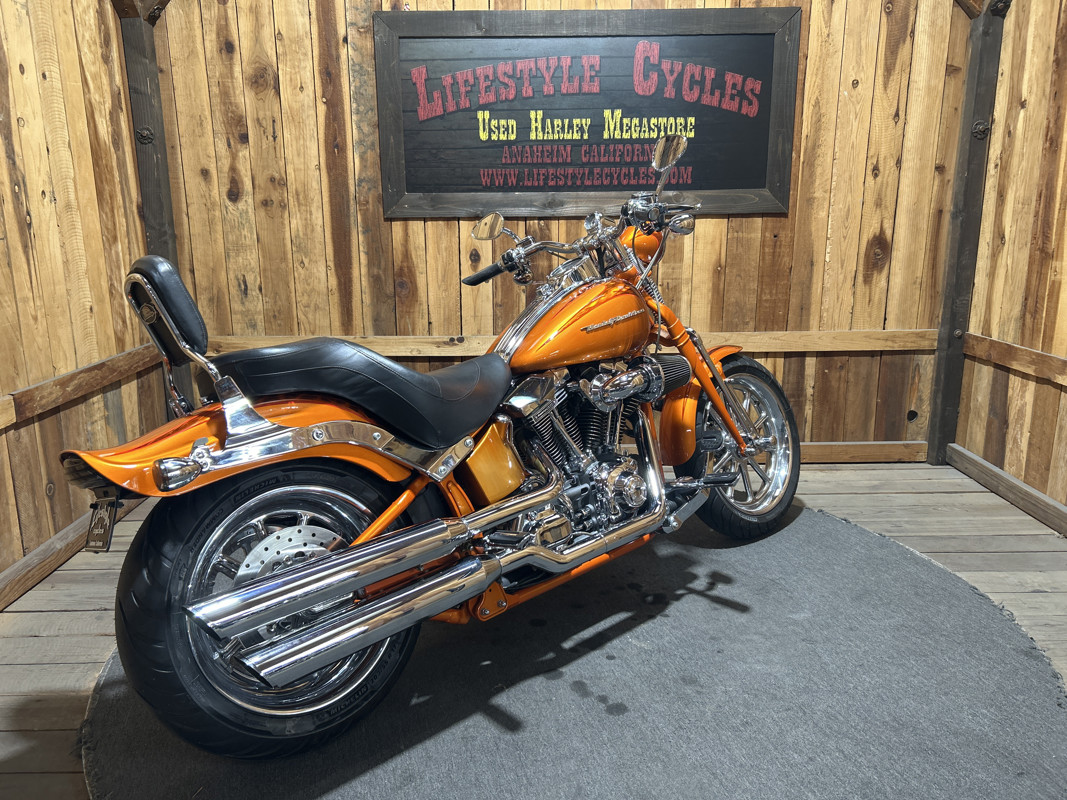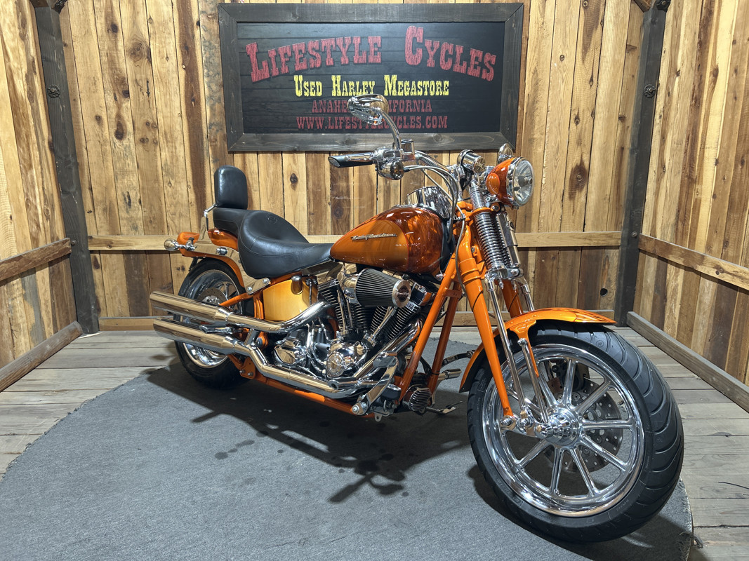 * Harley OEM Inferno Orange Paintjob * Two-Up Harley Seat * Chrome Sissy Bar Backrest * Screamin Eagle 110 Cubic Inch Harley Twin Cam Motor * Screamin Eagle Heavy Breather Air Cleaner * Forward Controls * Dual Chrome Harley Exhaust with Slash Cut Ends * Hydraulic Clutch