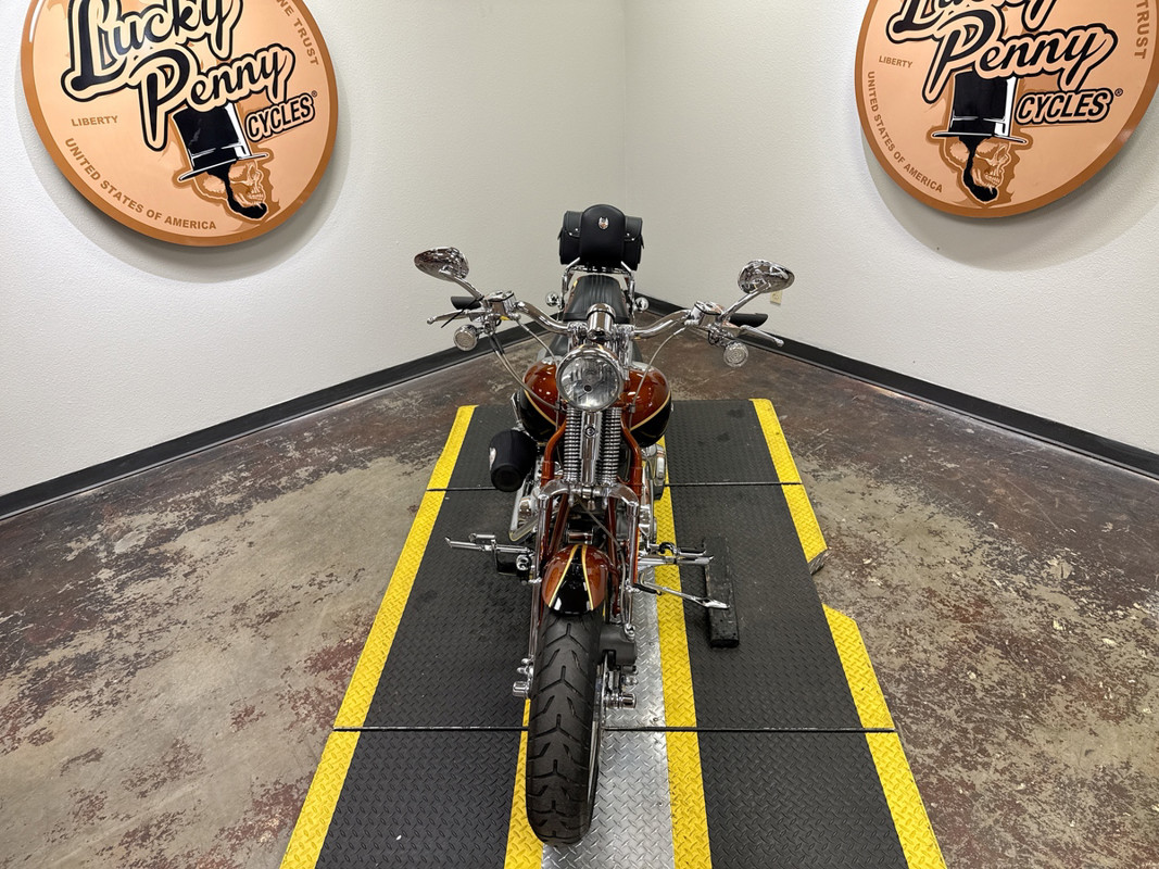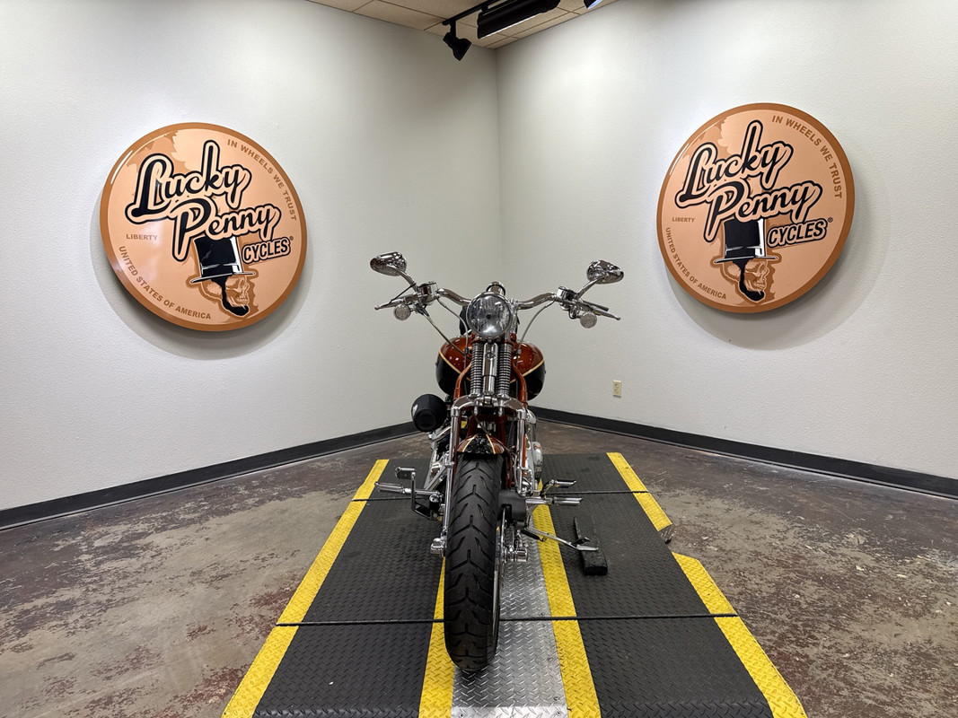 This is a 2008 SPRINGER CVO (custom vehicle operations) with only 1371 miles. This bike doesn’t have a blemish on it anywhere. It is the anniversary Crystal Copper and Black Onyx limited edition with real gold leaf. Also comes chrome wheels, 110 twin cam performance Screaming Eagle engine straight from the factory. Comes with the optional passenger backrest with anniversary logo and chrome luggage rack these had to be purchased as an option they did not come standard with the bike. Note bike is unmolested and has everything it came with from factory, exhaust, tach, original handlebar grips, all chrome controls, Screaming Eagle big sucker air filter and factory teardrop mirrors. Bike is show quality and is a great asset to any collection.