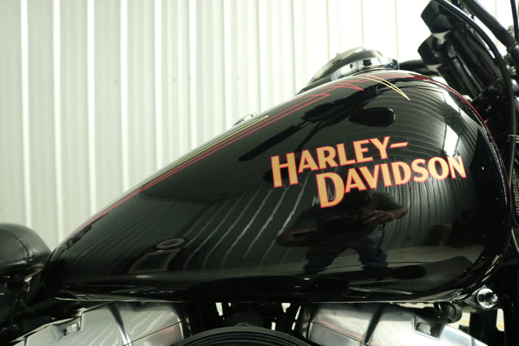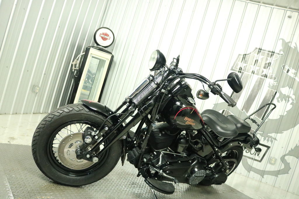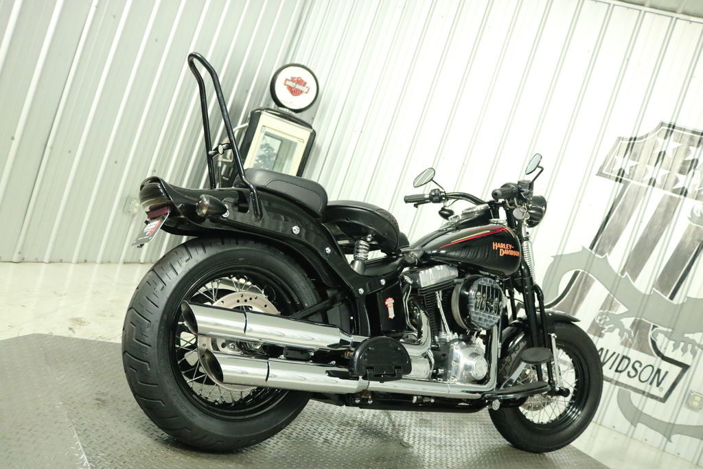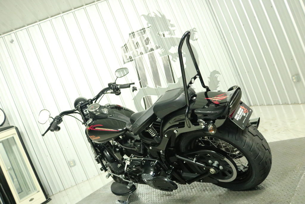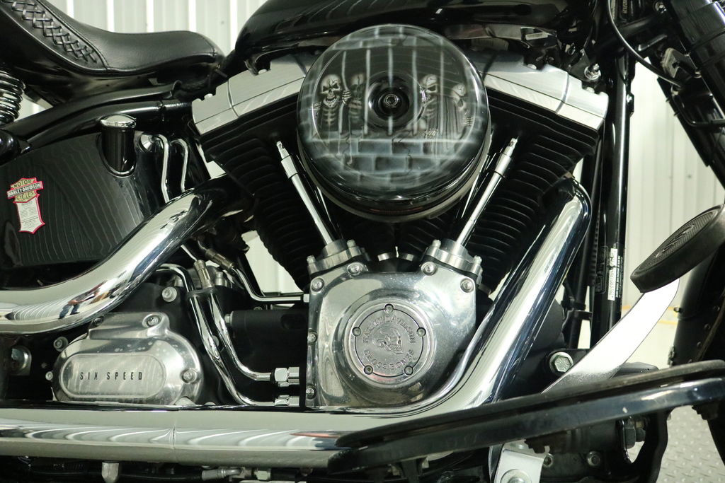 Long for the days of the original “Big Twin”, but don’t have enough tucked under the mattress to buy a ‘40’s Panhead . . . even IF you could find one intact? This might be the bike for you! For it’s short run as the LAST and lonely Springer remaining in the Harley-Davidson model line up (after 2011, there were NO more Springers) The Crossbones has become one of the most sought-after Springers made. It was a true “backyard” custom from the factory. This one has been “tweeked” a bit with the conversion to a more traditional bar set up, while leaving the factory “Spring saddle” in place. That, in itself, is a unique find. Most of those saddles were replaced by more modern “on the frame” saddles, and lost to history, but not this one. From the hind end, that BIG FAT tire under the bobbed fender gives it a modern hot rod booty with a traditional style front end. If you’ve never ridden a Springer, you might need to come take this one out for spin. There’s nothing quite like riding along and actually being able to SEE your suspension doing its work. It really gives you a feeling of “ONE” with the bike. . . and those “Von Dutch” style factory pinstripes! WOW!