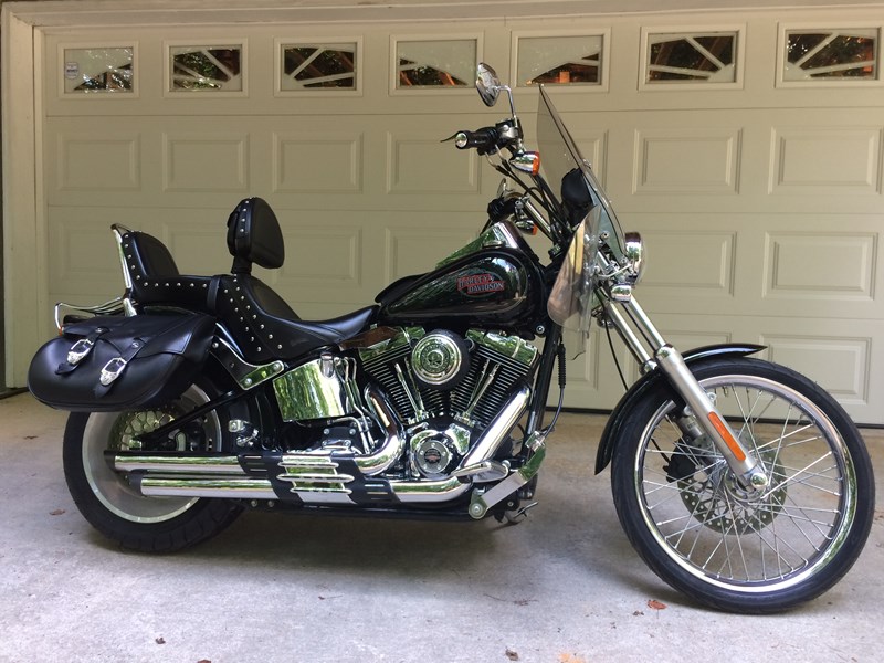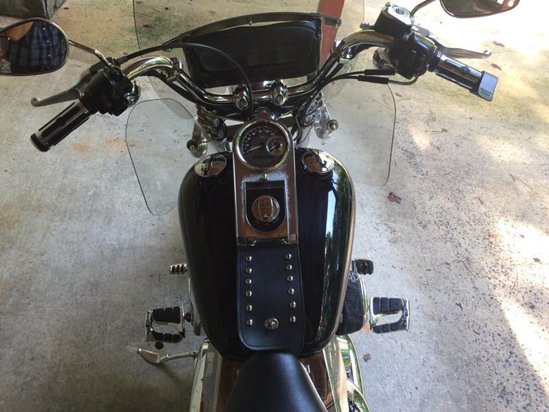 HD speedo/tach upgrade with fuel, miles to go, clock etc. Tank Pouch, HD Shotgun Shell button style soft bags with hide away exterior straps. Saddleman studded gell pad seat (lowest to the ground). Double drink holders. Mini apes with HD grips.