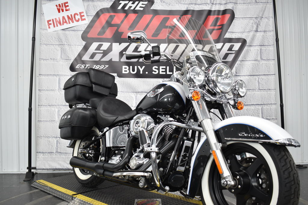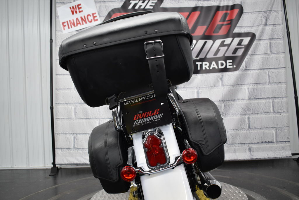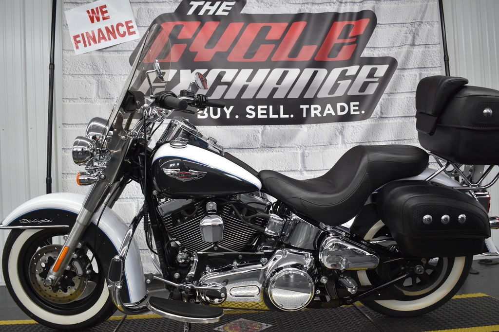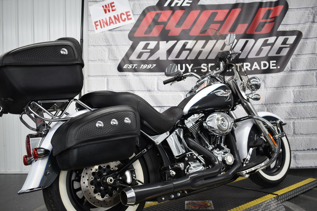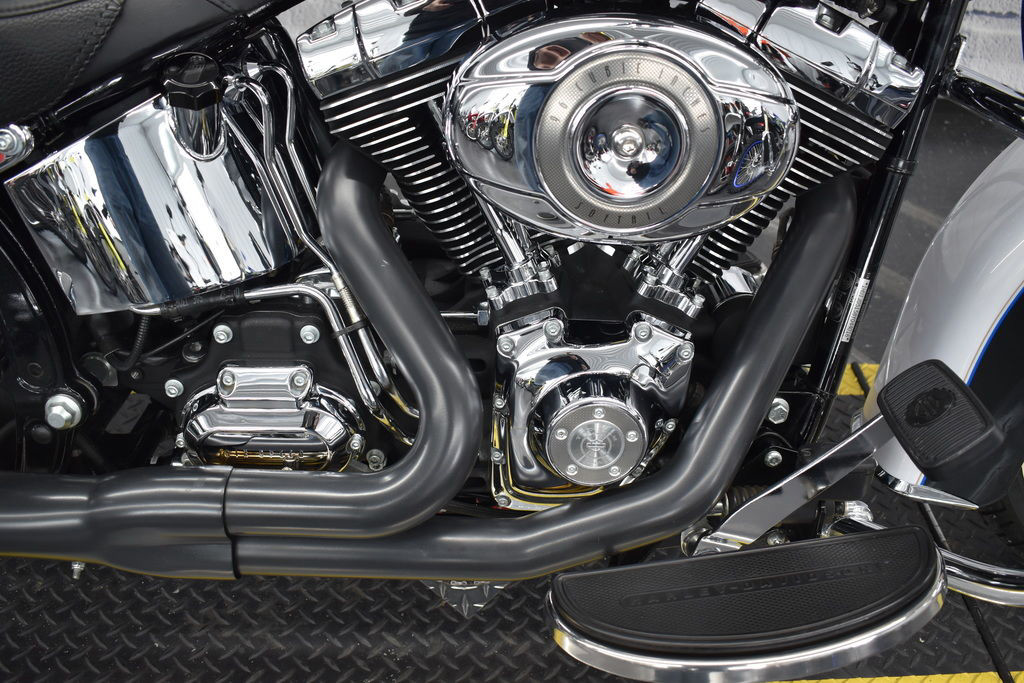 FLSTN Softail® Deluxe is dripping with nostalgia, from its integrated luggage rack and seat with check side panels with a chrome grab rail, to its full-length footboards and wide whitewall tires on Chrome Laced Steel wheels. A classic tombstone tail light is perched on the rear fender. Pull-back handlebar and a low, 24.5-inch seat height add cruising comfort.