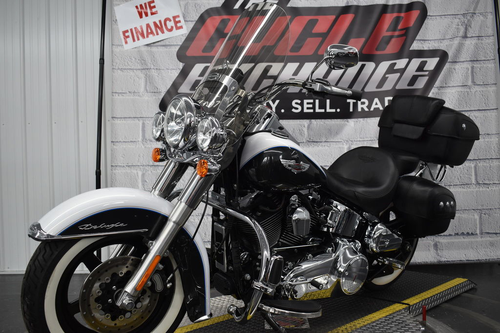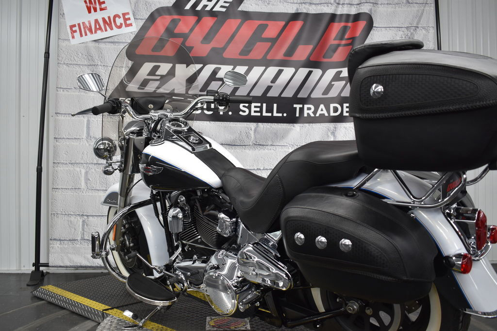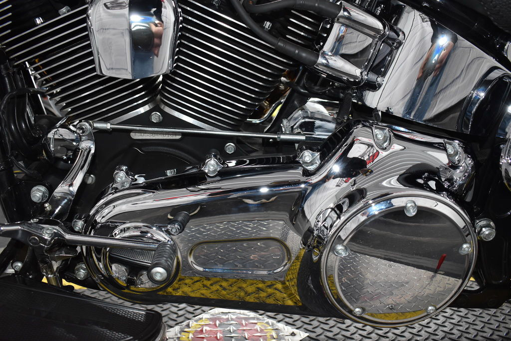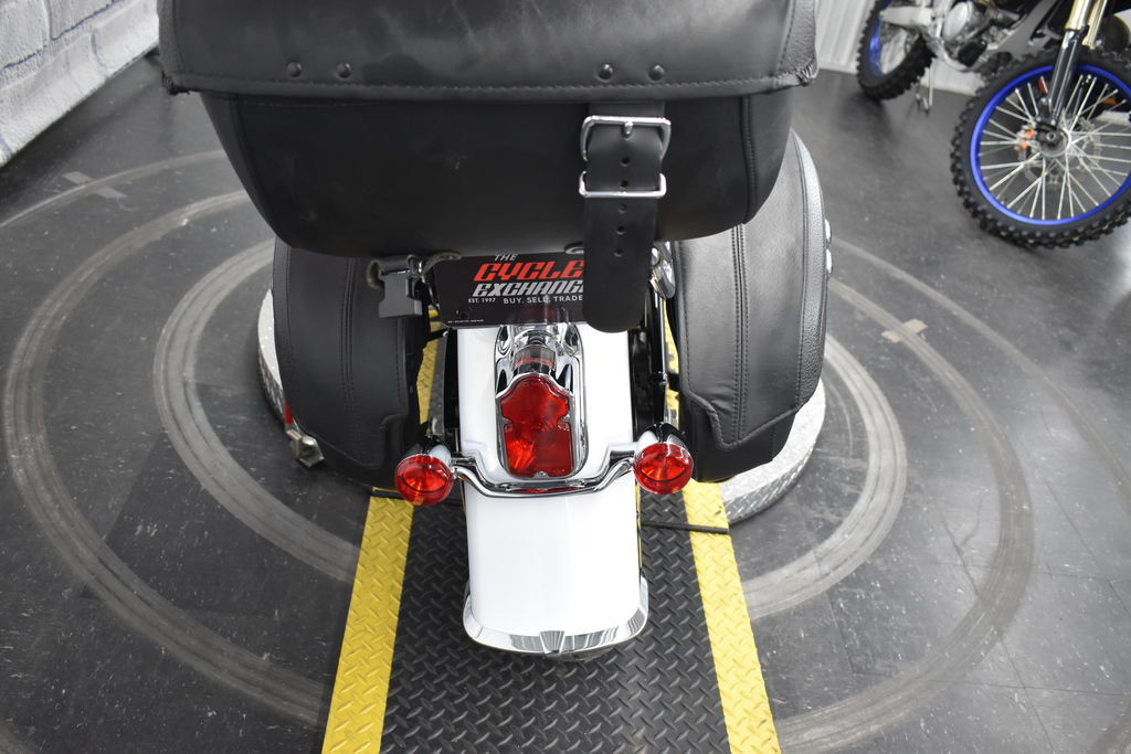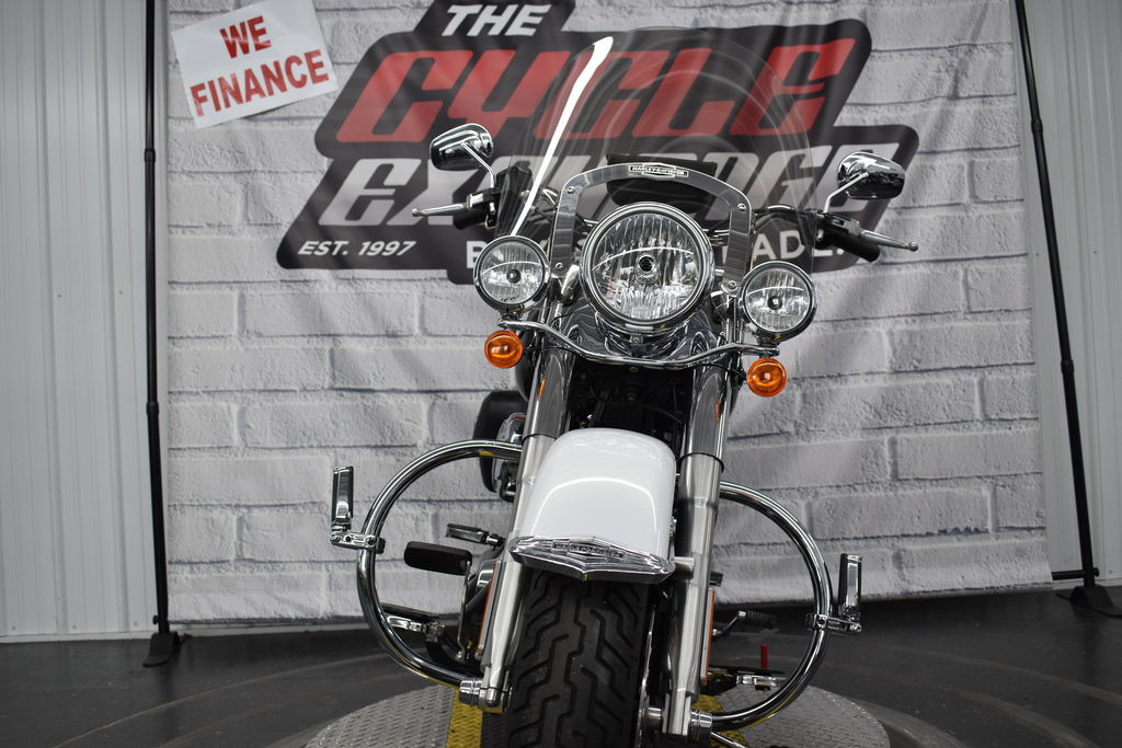 FLSTN Softail® Deluxe is dripping with nostalgia, from its integrated luggage rack and seat with check side panels with a chrome grab rail, to its full-length footboards and wide whitewall tires on Chrome Laced Steel wheels. A classic tombstone tail light is perched on the rear fender. Pull-back handlebar and a low, 24.5-inch seat height add cruising comfort.