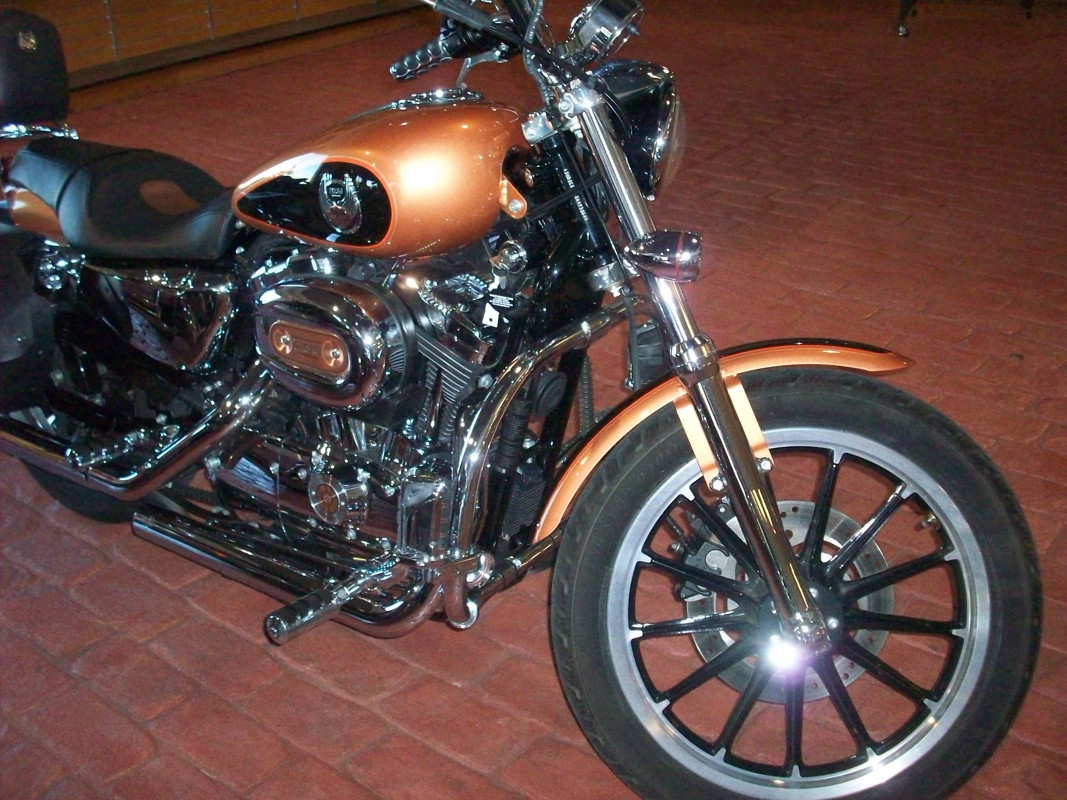 1200 Sportster with lots of extra chrome and custom accessories. Custom made luggage rack and gear shift connector shaft. Hand grips and all rider & passenger pegs are by Kuryakin.