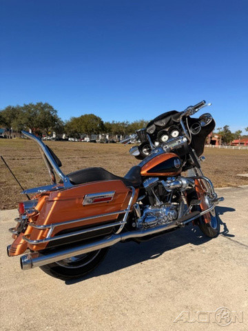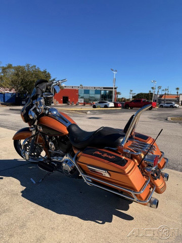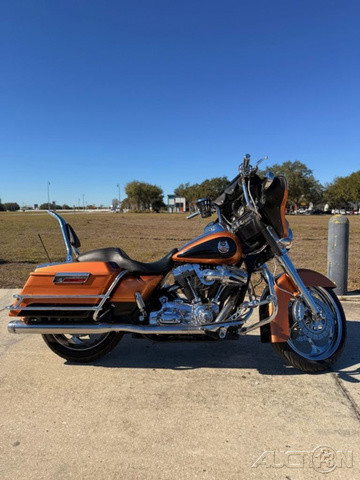 2008 Harley-Davidson® Street Glide®A custom for the long haul, the FLHX Street Glide® offers the comfort and function of a dresser with stripped-down styling. Lowered rear suspension, a smoked mini-wind deflector, and Tri-line LED lighting at the bottom of the rear fender gives the Street Glide® a low, lean profile. A traditional "bat wing" fairing holds a 40-watt Advanced Audio System by Harman/Kardon®, while a new, shorter antenna streamlines the look.
