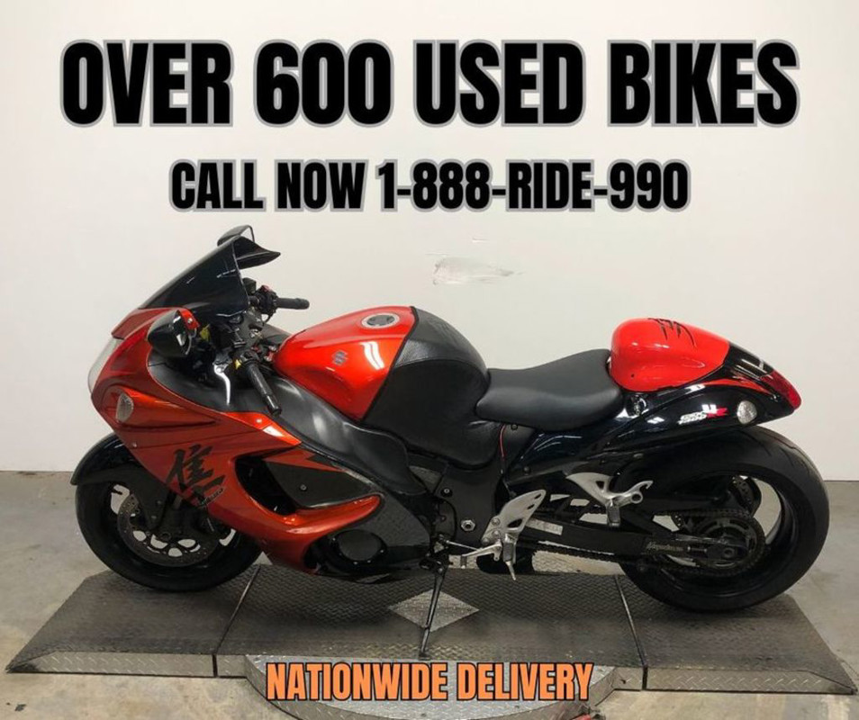 USED SUZUKI HAYABUSA FOR SALE IN ORANGE & BLACK WITH $1,150 IN EXTRAS! TINTED WINDSHIELD, UNDERGLOW ORANGE L.E.D. LIGHTS, SOLO SEAT, REAR SEAT, TANK PAD, CUSTOM LICENSE PLATE MOUNT, AND THE STAINLESS STEEL MUZZY EXHAUST SOUNDS GREAT! JUST SERVICED AT A FACTORY AUTHORIZED SUZUKI DEALERSHIP, ALL FLUIDS CHANGED, RUNS STRONG, SOUNDS GREAT, EVERYTHING WORKS, NEEDS NOTHING!