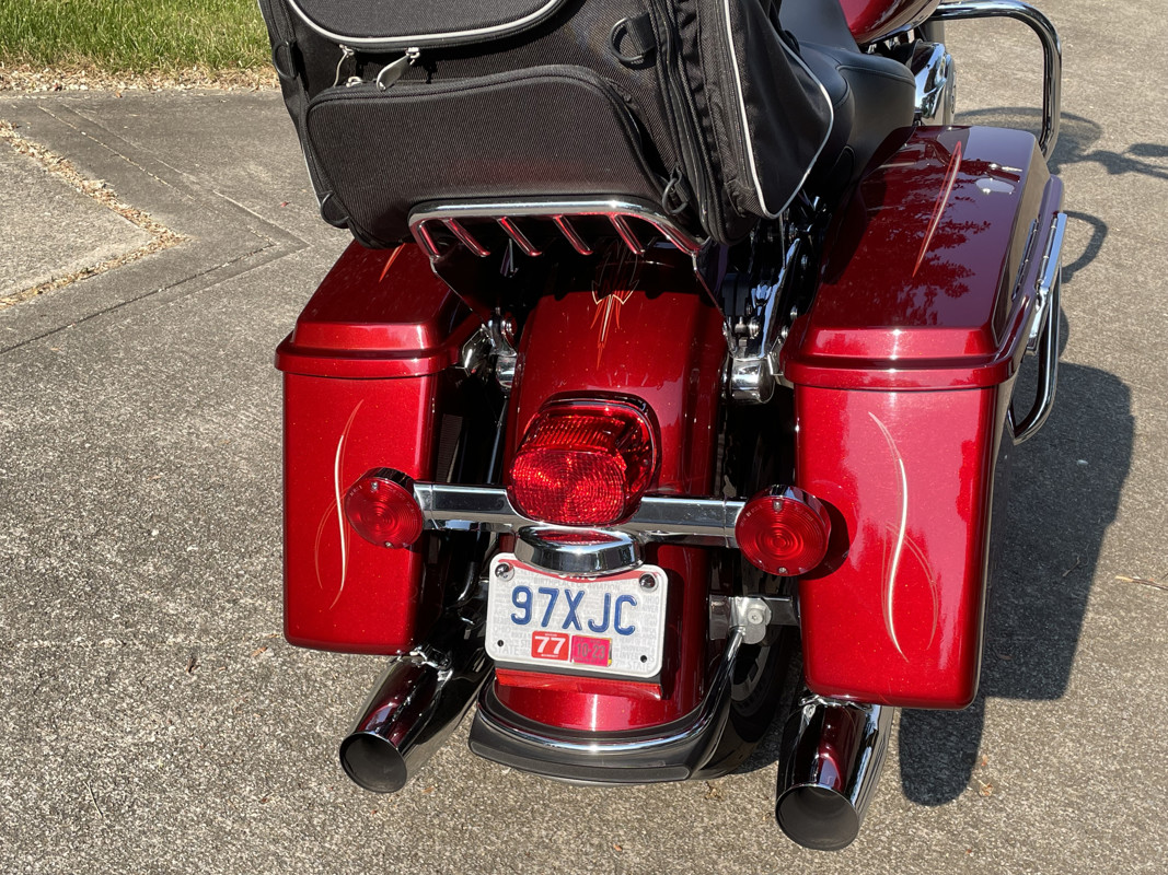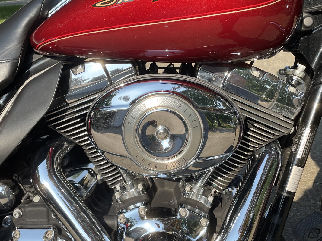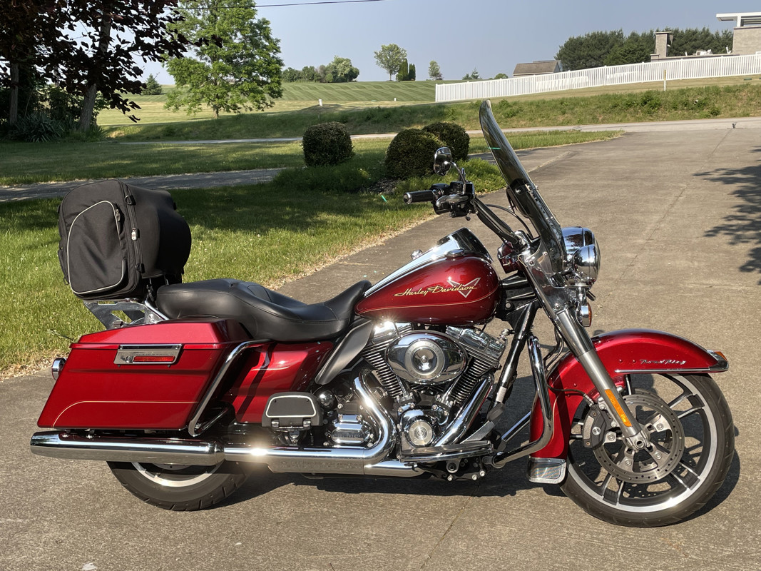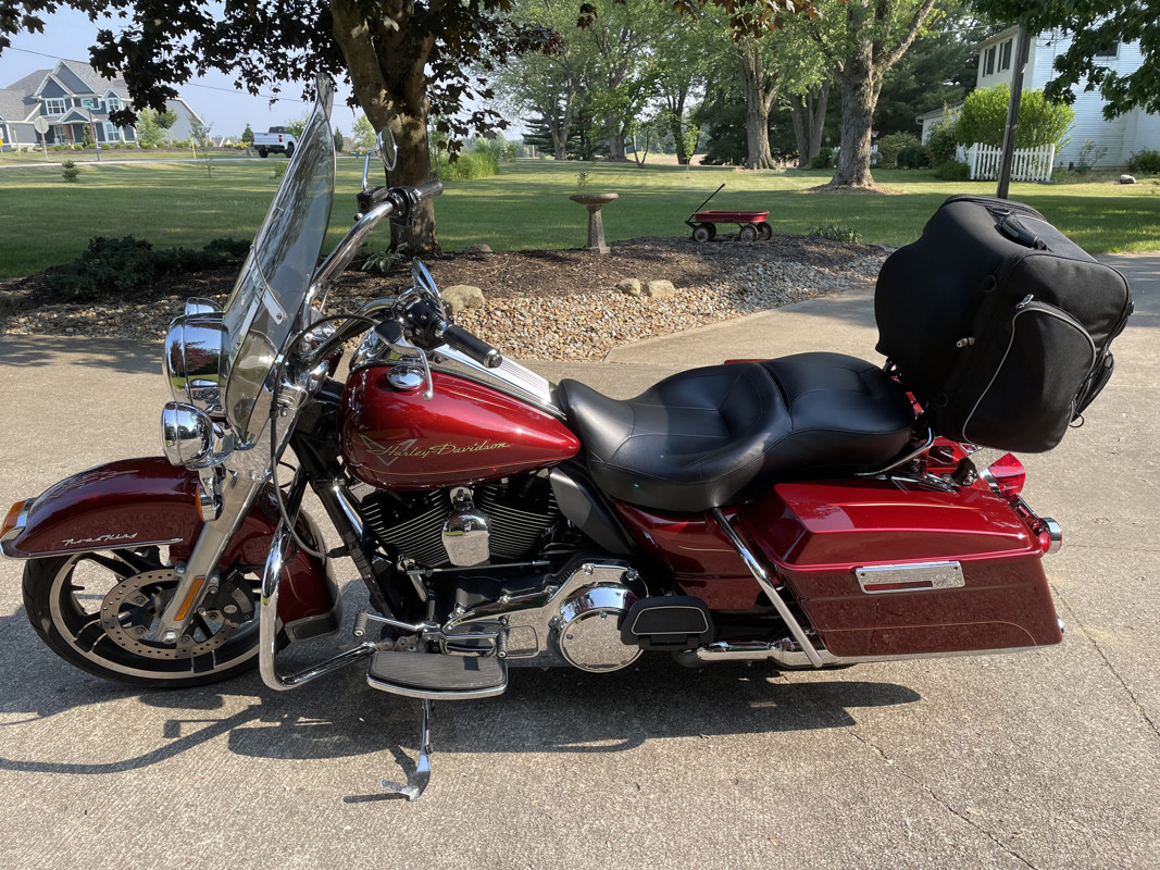 Very good condition 09 Road King. This bike has never been tuned, still has stock exhaust, etc. It has been in my family since new in 09, I bought it from my father in 2014. I have most all of the records of service, parts added, etc. The seat was swapped to a factory hammock seat for comfort. (original sold). The bars were swapped to the more recent factory bars from a Heritage to get my arms up to close to level. The wheels were swapped to a Road Glide takeoff set that I bought when tires were needed. Original bars and knuckle wheels come with the bike. All lighting has been upgraded to LED's. Pin-striping was done when my father owned it, he's not sure who the artist was. This has been a great bike for me, my first touring bike. It has been all over the eastern US. No accidents, no breakdowns, never left me stranded. It has ABS, heated grips, cruise control, and the immobilizer. Comes with all fobs, manuals, suspension pump, and the rally pack on the back expands to be quite large. Everything works as it should. It will need to be serviced for the new owner, and the tires should be replaced due to age and wear, but fine to get you home. This is my least ridden bike as I have larger Indians, which fit me better, so time to let it go to someone who can enjoy it.