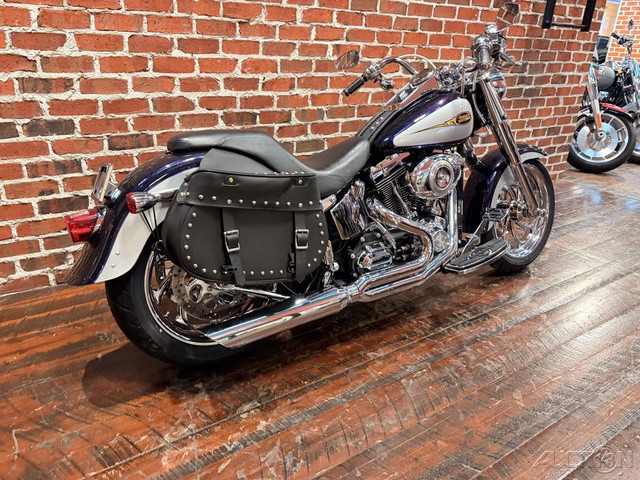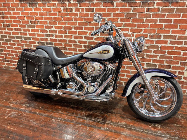 2009 Harley-Davidson® Softail® Fat Boy® One of the world’s most distinctive motorcycles, the FLSTF Fat Boy® rolls with a size and stature second to none. The Fat Boy® rides wide on a 200 mm rear tire and 17-inch front wheel and bright chrome fork nacelle. Unique premium components like Bullet Hole Disc Aluminum wheels and fat front forks identify this Softail as the iconic Fat Boy®. New optional mirror polished chrome-plated wheels can accentuate the Fat Boy® look.