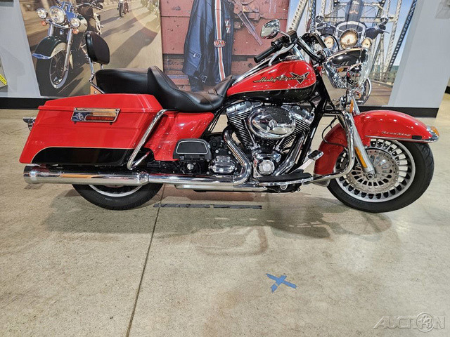 2010 Harley-Davidson® Road King®The Road King® combines Harley-Davidson® styling heritage with long-range riding comfort. The detachable windshield and hard-shell saddlebags make this a versatile motorcycle suitable for touring or commuting.
