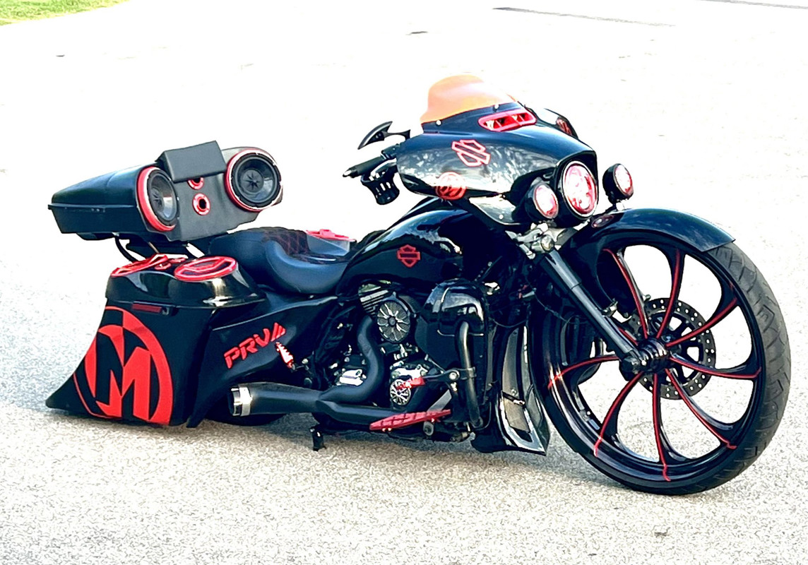 2010 Street Glide. 30" front wheel, 10 speakers plus six dome tweeters, apple play big screen radio with wireless blue tooth, side exhaust, electric center stand, front and rear air ride, rear tour pack is aftermarket voodoo bikeworks for two 8" speakers, Cicada and PRV speakers, custom rear end 8" down, 18" back. 2014 and up bag lids for two 8" speakers and two tweeters in each lid. Red accents on whole bike. All the red on the body are vinyl stickers and easily removed if someone doesn't like the red. Rear tire was just replaced, has about ten miles on it. Dual battery set up and also comes with a curly's battery tray that goes behind the rear tire under the rear end out of sight that isn't installed yet for a third battery. Stereo is powered by a Surge Audio PS-6000.5 | 6,000 WATT 5-CHANNEL AMPLIFIER in the tour pack. And it takes up the entire tour pack so no storage left in there. Serious inquiries only. Possible partial trades. $20000 OBO Shipping available.