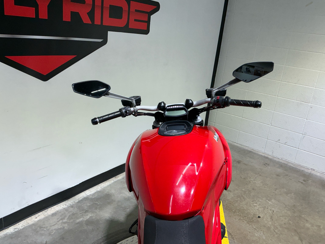 Even when disappearing in a split second, everyone will always be captivated. This is the magic of Diavel. The design sets new standards in beauty, innovation and sophistication, while outstanding agility and handling are encased within a muscular body which moves with 162 horsepower. Its astonishing power can be managed in three different riding modes and with the assurance of the Ducati Safety Pack (ABS plus Ducati Traction Control). Ducati has created something truly magic.