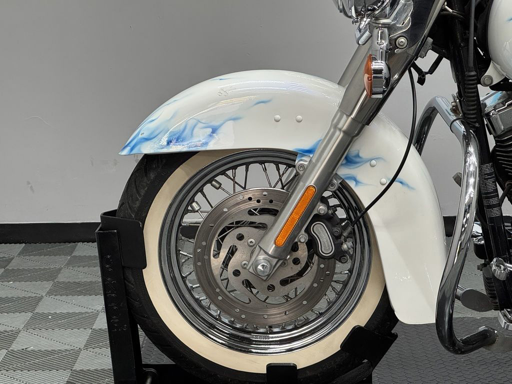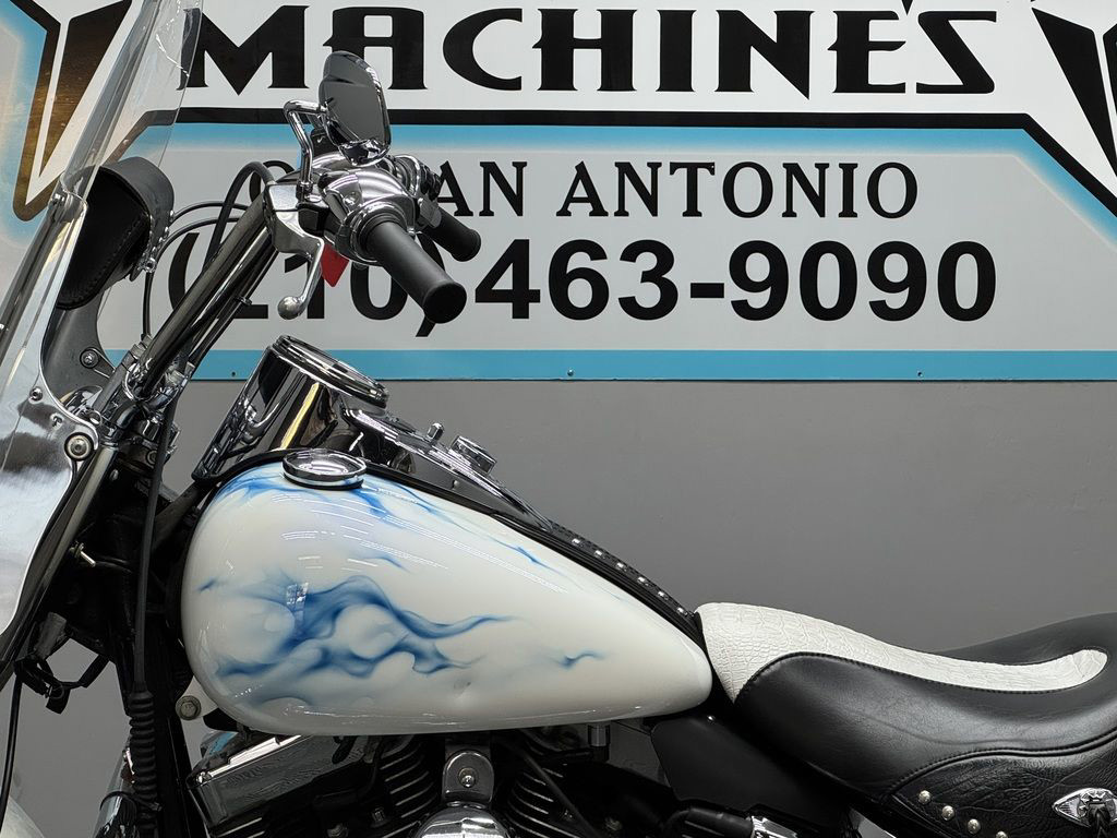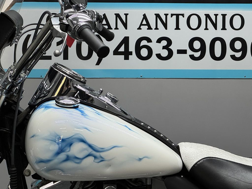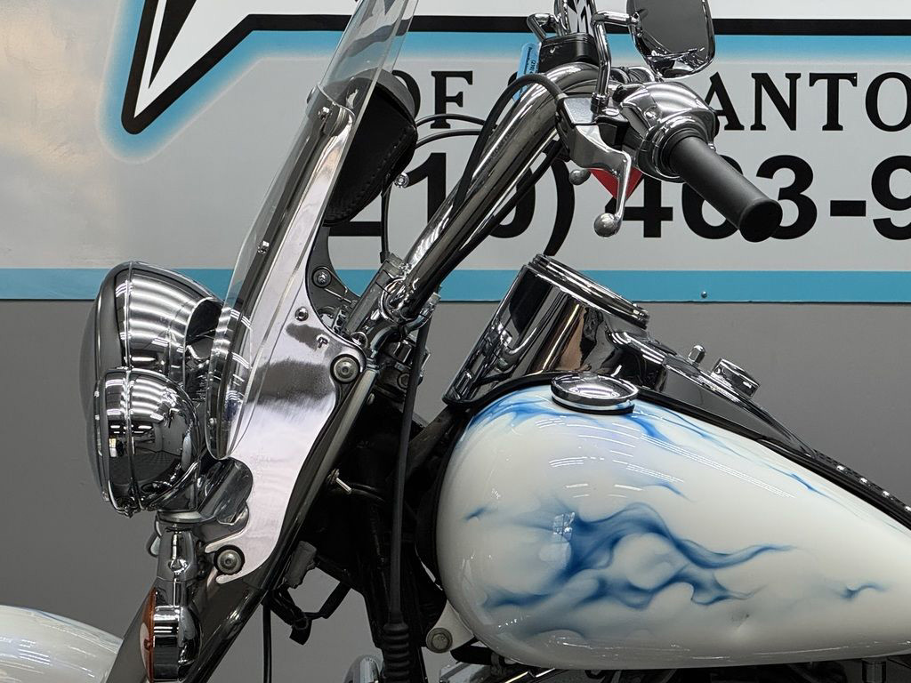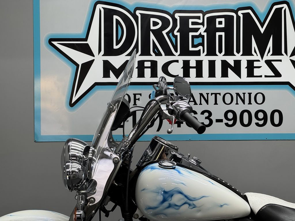 *BOOK VALUE IS $8,980 SHIPPING, LEASING, FINANCING AND EXTENDED WARRANTY MAY BE AVAILABLE! YOU ARE LOOKING AT A 2011 HARLEY DAVIDSON HERITAGE SOFTAIL CLASSIC (FLSTC) WITH 14,089 MILES ON IT. IT IS CUSTOM WHITE WITH BLUE FLAMES IN COLOR AND POWERED BY A 1584CC (96") FUEL INJECTED ENGINE AND 6 SPEED TRANSMISSION. THE BIKE COMES WITH 2 KEYS. THERE ARE SOME EXTRAS ON THE BIKE WHICH INCLUDE PYTHON SLIP-ON MUFFLERS ($399.95), WINDSHIELD POUCH ($67.95), ENGINE GUARD ($214.95), SWITCH HOUSINGS ($149.95), AND SHIFTER LINKAGE ($99.95).THERE ARE NO SCRATCHES, DENTS, OR DINGS THAT I CAN FIND WITH THE EXCEPTION OF SCRATCHES ON THE FRONT FENDER. THE CHROME AND ALUMINUM HAVE FLAKING ON THE BRAKE PERCH AND SCRATCHES ON THE EXHAUST. THE TIRES HAVE GOOD TREAD LEFT ON THEM.