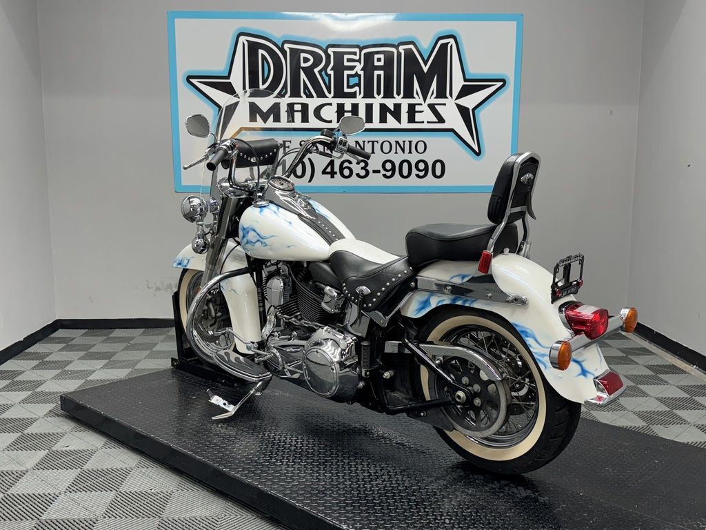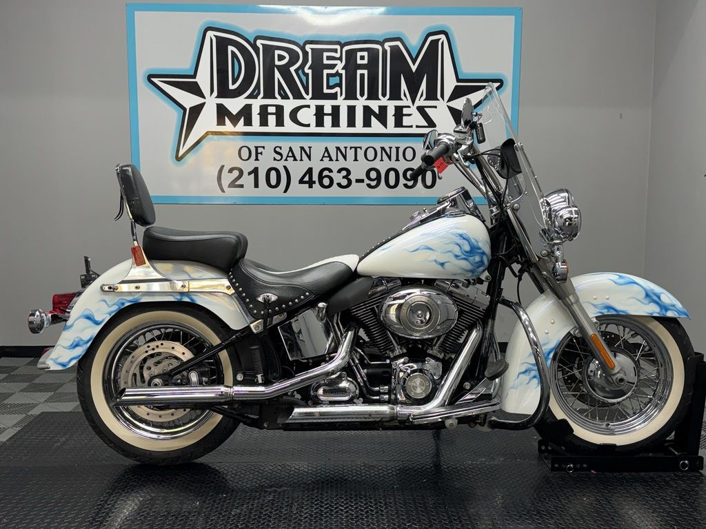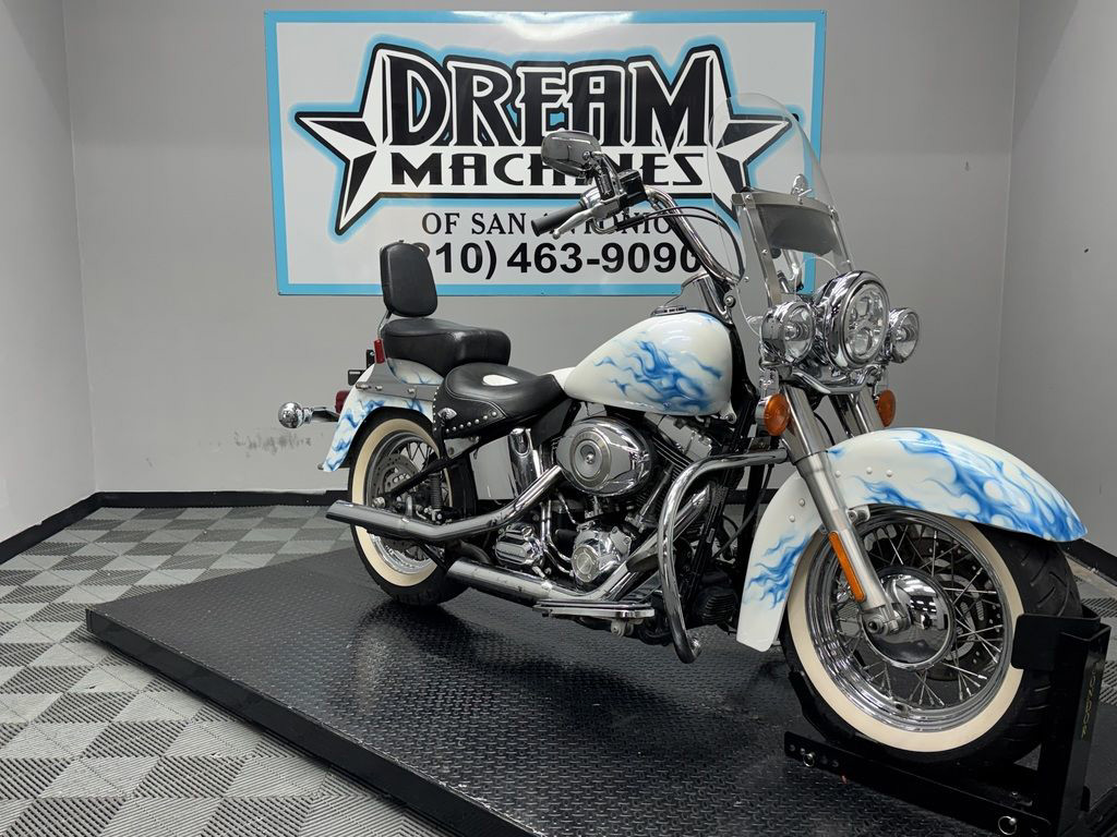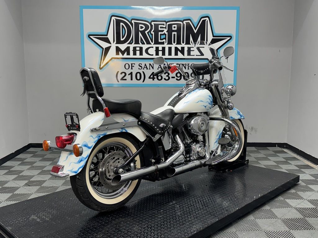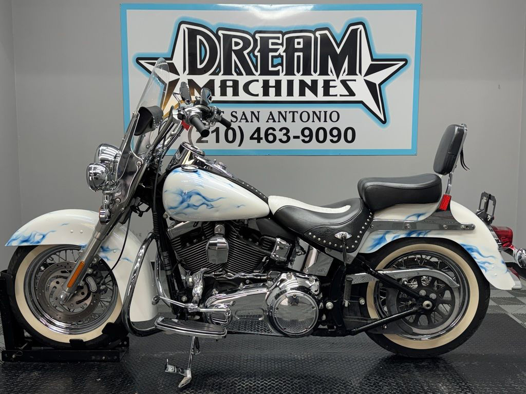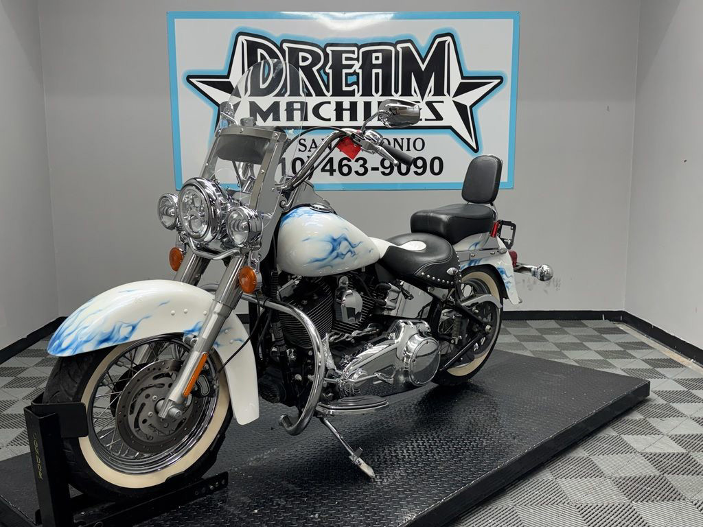 *BOOK VALUE IS $8,980 SHIPPING, LEASING, FINANCING AND EXTENDED WARRANTY MAY BE AVAILABLE! YOU ARE LOOKING AT A 2011 HARLEY DAVIDSON HERITAGE SOFTAIL CLASSIC (FLSTC) WITH 14,089 MILES ON IT. IT IS CUSTOM WHITE WITH BLUE FLAMES IN COLOR AND POWERED BY A 1584CC (96") FUEL INJECTED ENGINE AND 6 SPEED TRANSMISSION. THE BIKE COMES WITH 2 KEYS. THERE ARE SOME EXTRAS ON THE BIKE WHICH INCLUDE PYTHON SLIP-ON MUFFLERS ($399.95), WINDSHIELD POUCH ($67.95), ENGINE GUARD ($214.95), SWITCH HOUSINGS ($149.95), AND SHIFTER LINKAGE ($99.95).THERE ARE NO SCRATCHES, DENTS, OR DINGS THAT I CAN FIND WITH THE EXCEPTION OF SCRATCHES ON THE FRONT FENDER. THE CHROME AND ALUMINUM HAVE FLAKING ON THE BRAKE PERCH AND SCRATCHES ON THE EXHAUST. THE TIRES HAVE GOOD TREAD LEFT ON THEM.