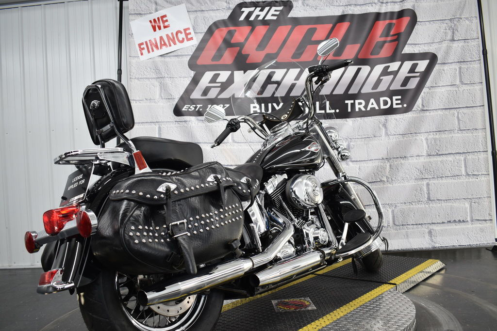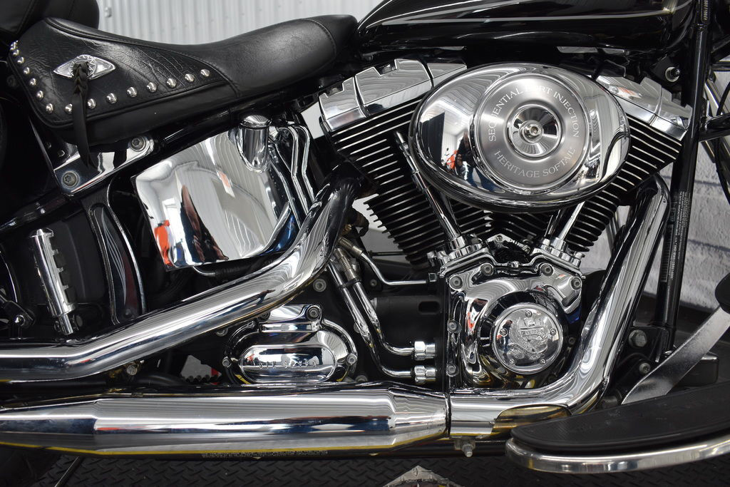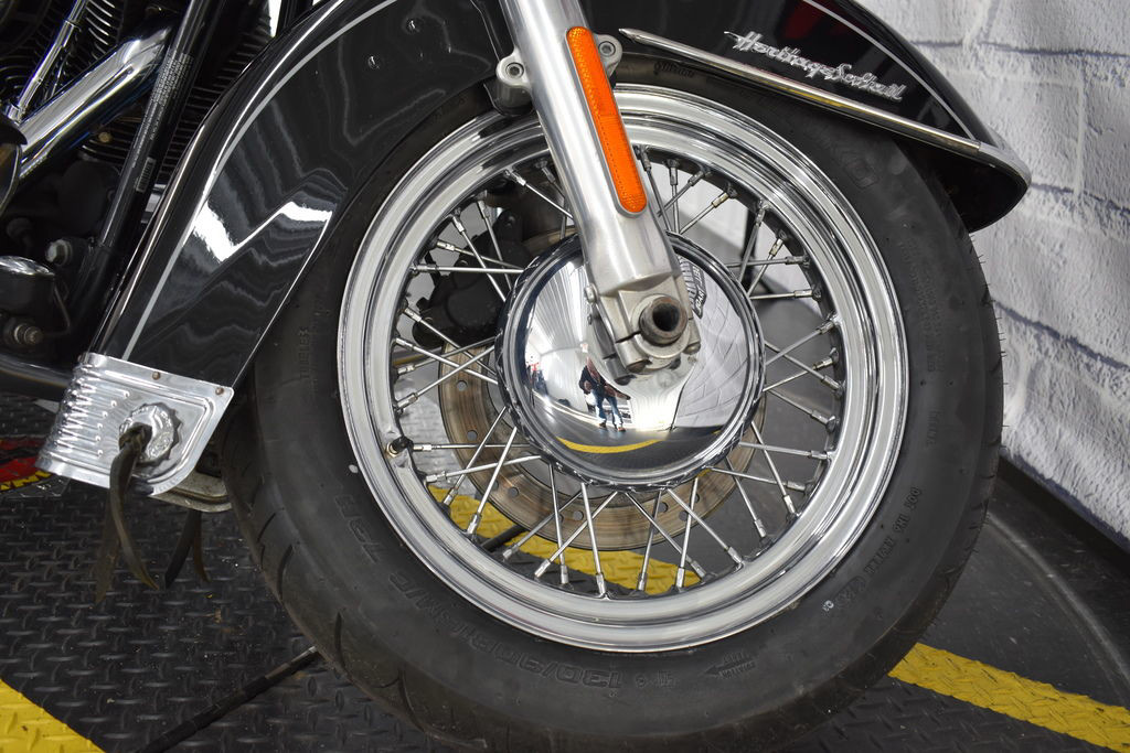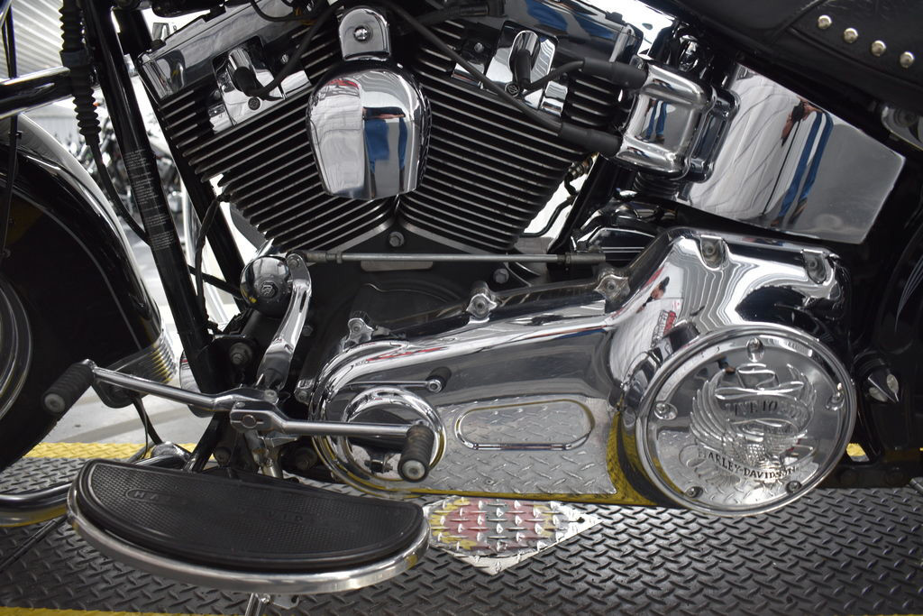 The 2011 Harley-Davidson® Heritage Softail® Classic motorcycle FLSTC is fully equipped with modern touring capabilities and even has a removable motorcycle windshield. Enjoy mile after mile with a large capacity 5 gallon Softail fuel tank. The Softail tank is also dripping with authentic Harley-Davidson® style. The Harley® FLSTC has full length rider footboards with rubber vibration isolation for added comfort. Another of the many great features of this classic motorcycle is the detachable motorcycle windshield.