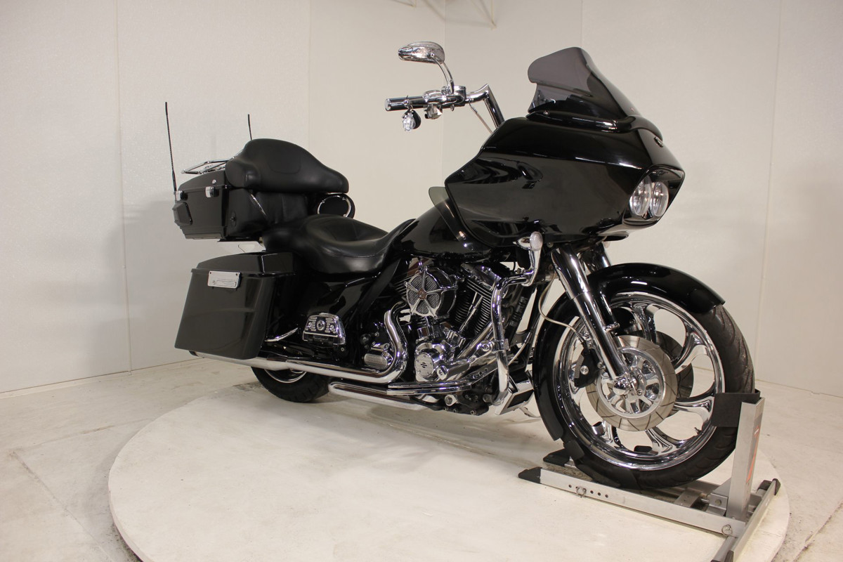 2011 is the Harley-Davidson® Touring Road Glide® Ultra FLTRU, a premium-feature bike for your motorcycle travel. This bike will give you long-haul touring features and custom style including the GTX saddlebags, Tour-Pak®, large 17 in. front wheel, high output accessory connector, cruise control, and comfortable motorcycle seat. Also take note of the frame-mounted Harley fairing offering you dual storage compartments plus wind protection for your motorcycle travel. The motorcycle seat on the Road Glide Ultra FLTRU gives comfort to the driver and any passenger. This bike is Custom. 12 Inch Chrome Raised Bars with Custom Grips and Custom Mirrors, Clockwork Windshield, Skull on the Fairing, Custom Skull Horn Cover, Custom Boards for both Passenger and Rider, Custom Shifter Pegs to match the Boards and Custom Brake Peddle and also Match the Highway Pegs off the Engine Guard, Custom Air Intake and Rhinehart Pipes that make this bike speak out. The Tour Pack is detachable so that you can ride without and there is a Passengers Backrest. There is also a Riders Backrest. Is there anything I forgot? Check out the pictures and then come see this machine. This Bike has Custom Performance Machine Wheels Both Front and Rear.