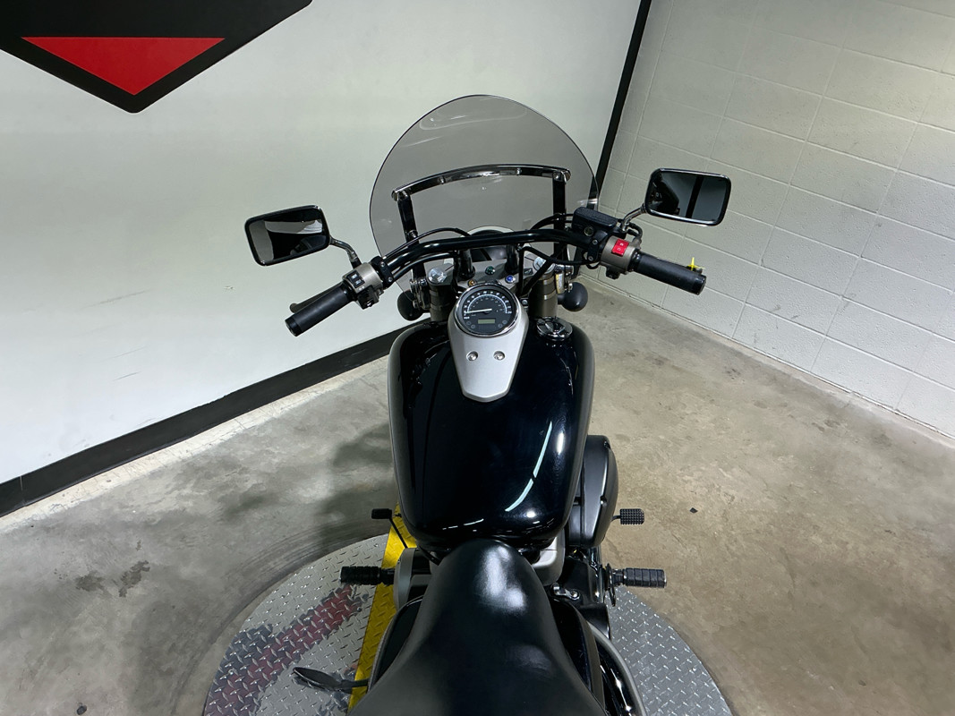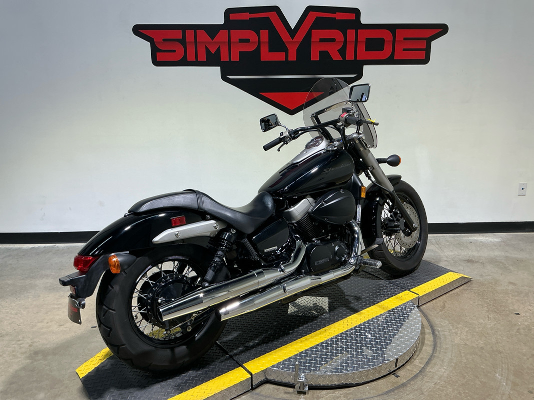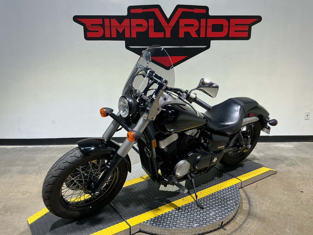 The first time you lay eyes on the Shadow® Phantom, it’s impossible to keep yourself from staring. Gawking, really. And wishing you had one in your garage. After all, this is the most unique Shadow we’ve ever made, an utterly stunning head-turner with its blacked-out 745 cc V-twin engine and black rims sporting matte silver highlights, bobbed fenders, spoke wheels, and beefy front forks. Then the exhaust note hits you, a deep, throaty pulse rumbling from dual exhausts. It’s hard to resist, we know. And downright impossible once you’ve seen its price tag.