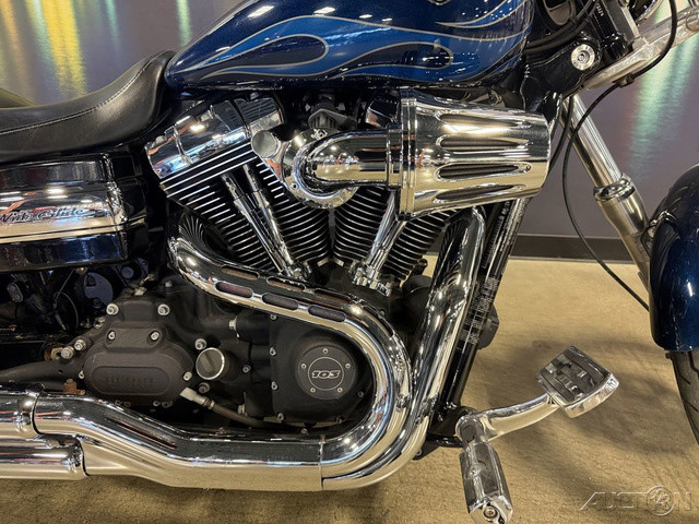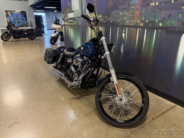 2012 Harley-Davidson® Dyna® Wide Glide®The 2012 Harley-Davidson® Dyna® Wide Glide® FXDWG is full of classic chopper motorcycle style. New for 2012, the Harley® Dyna® Wide Glide® features a new larger air-cooled Twin Cam 103™ Harley® engine with 6 speed cruise drive tranmission, providing more power for passing, hill-climbing, and riding with passenger and cargoIn front is a long and raked out fork with a 21 inch wheel, giving this model quintessential chopper motorcycle style. And in the back, the Harley® Wide Glide®features a side mounted license plate for added custom chopper motorcycle style. Want even more factory custom style on your chopper motorcycles? This bike also features an optional classic flame design on the fuel tank. Select the flames on the Harley-Davidson® Wide Glide® chopper motorcycle for a factory custom look at an affordable Harley® price.Features may include:CLEAN REAR FENDER STYLINGThe lines are clean as the distant horizon and the fender is cut short with a side-mounted license plate bracket for an old school look. Fastened to the fender are retro-style, bullet stop-turn-tail lights that combine to work twice as hard for you—stop beams and running lights plus turn indicators in two low-profile rear lamps.BEEFY TRIPLE CLAMPS & FORKSThis is what makes a Wide Glide® a Wide Glide®—beefy triple clamps and raked out forks for a long, wide style. The shear amount of steel up front gives this Harley-Davidson® motorcycle a defining look, one you can see coming for miles. Just as fat and aggressive-looking as the first Wide Glide® model built by Chief Styling Officer Willie G. Davidson back in 1980.SIX-SPEED CRUISE DRIVE®You want a ride that rumbles—not begs for mercy—when you lean on it a little. The Six-Speed Cruise Drive® transmission provides smooth, quiet shifting and reduces engine speed on the highway, so you get a better match between engine turnover and road speed. It's a rare ride when a bike responds like this, and a low growl goes a long way when you're opening up the road ahead.TWIN CAM 103™ ENGINE POWERNew for 2012: live your ride to the power of 103™. The air cooled Twin Cam 103™ Harley Davidson® engine delivers more stump pulling torque, while its Electronic Sequential Port Fuel Injection jetting gives crisp, lively throttle reaction. It’s a performance punch that you’ll appreciate when passing, climbing hills, or rolling with luggage packed or a passenger in back—all under that signature Motor Company rumble. And it comes at lower cruising rpm, so you ride more smoothly, with less engine vibration and better highway fuel economy.ADJUSTABLE SUSPENSIONPreload is easily adjusted with a spanner wrench to make your suspension suit you and your riding style. The slammed low rear suspension gives you a more laid-back riding position and style. Low-profile, kicked back for profiling down the boulevard and hugging corners.