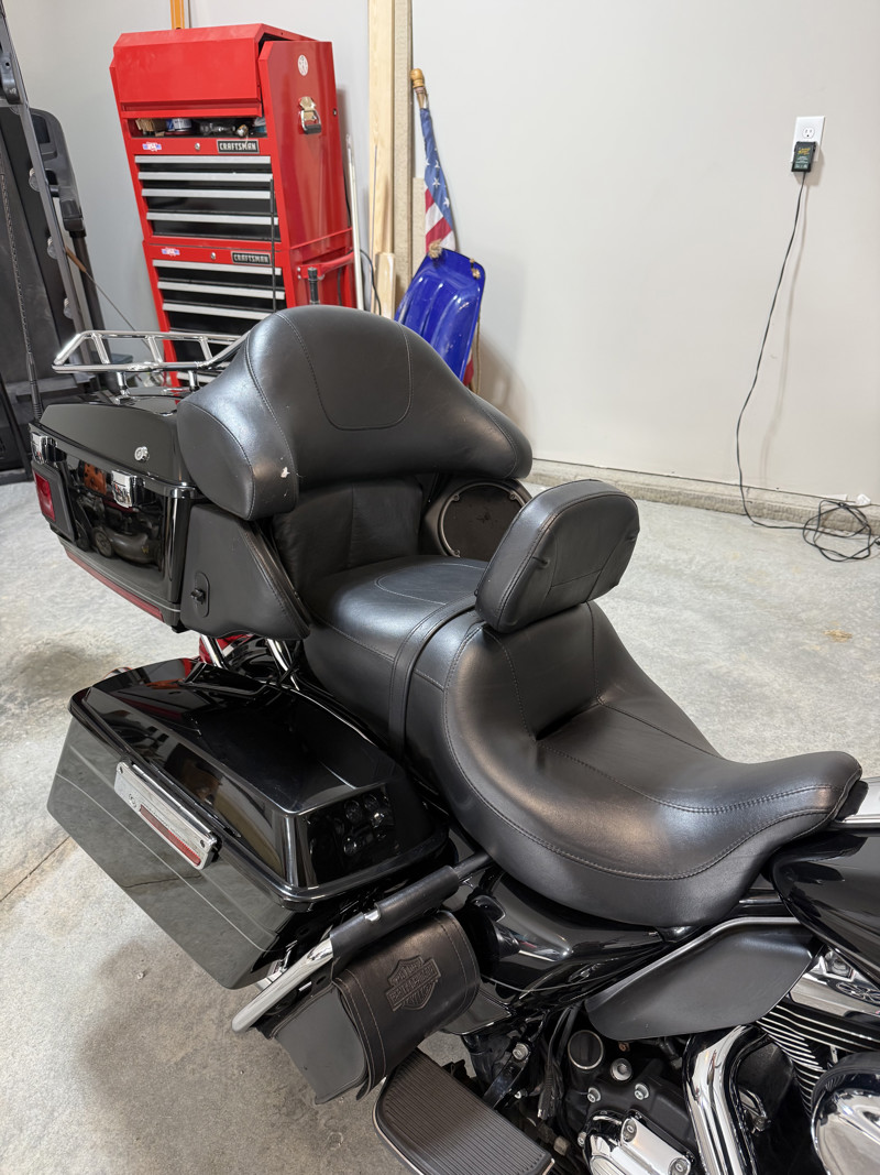 Bike rides like new and has had routine maintenance completed by a certified Harley Davidson mechanic. Selling because I don’t ride it as much due to starting a family. Front and rear tires have roughly 1,000 miles on them. Oil change completed at about 12,000 miles. Minor upholstery tear. Saddle bag and tour pack soft removable bags included. Bike has the original two key fans as well as owners manual. Also includes seat pump as well as Harley Davidson allen wrench set.