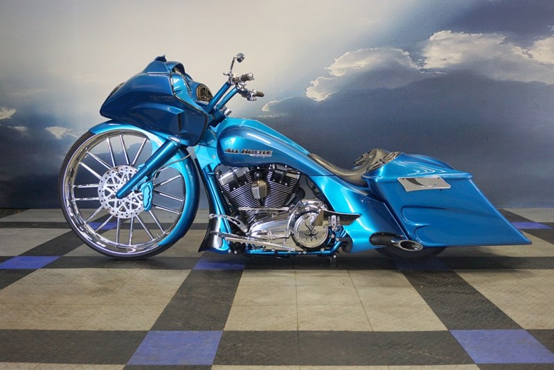 All words that describe this ONE-OF-A-KIND 2012 Harley Davidson Road Glide Bagger. This BIG WHEEL MACHINE is NASTY in every sense of the word. Yes, you read that correct…30 Inch FRONT WHEEL! Let me say that again….30 Inch FRONT WHEEL!! Words cannot do it justice, so LOOK AT ALL THE PICTURES and ASK questions if you have them.