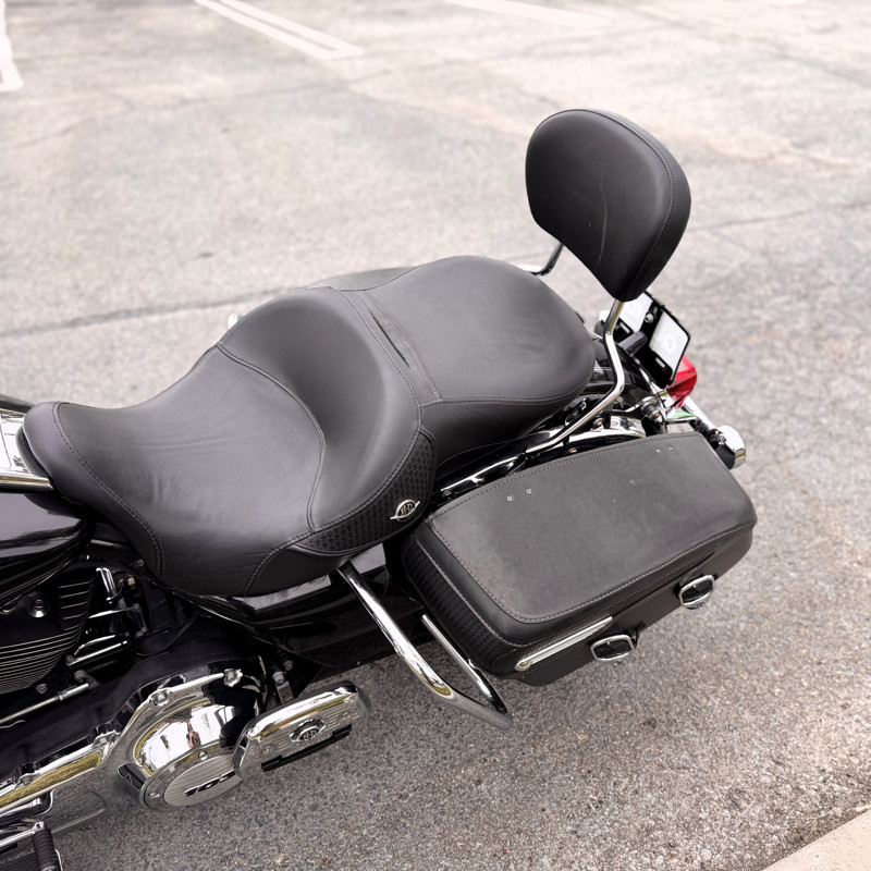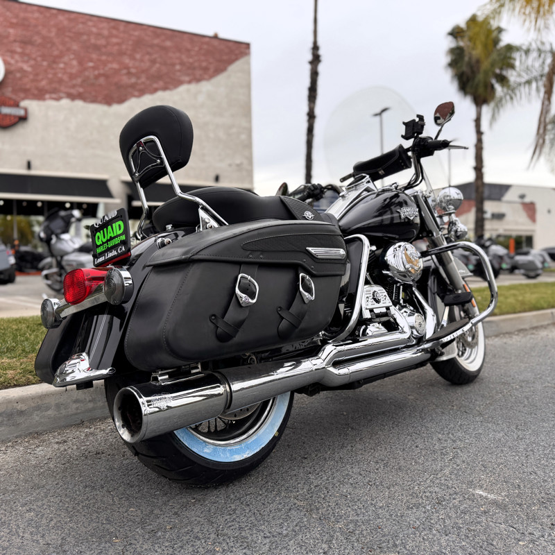 2012 Road King FLHR — Twin Cam 103, Vance & Hines exhaust, passenger backrest, custom covers, hard saddlebags, and classic Road King styling.