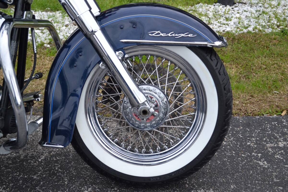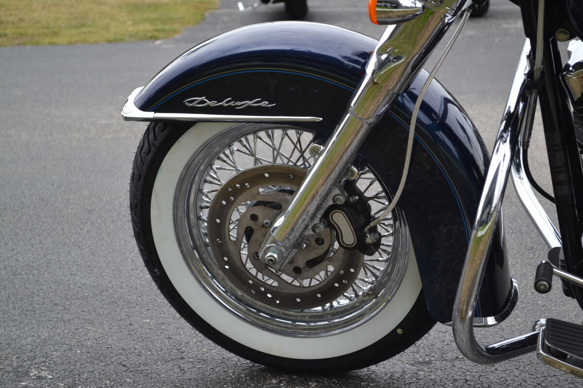 One of the most confidence-inspiring Big Twins, the Softail Deluxe features an extremely low seat with collapsing sides, pull back handlebar and riser, and easy-reach, extended kickstand. The powerful, counter-balanced Twin Cam 96B and 6-Speed Cruise Drive transmission are appreciated by many riders. Exquisite style details round out every other corner of this bike, from the clean front light bar, to the tombstone taillight, to the chrome grab rail and luggage rack, to the laced wheels and wide whitewall tires. The addition of the new Security Package option means riders have the choice of adding anti-lock brakes, giving even more functionality to all this form.