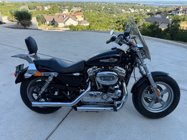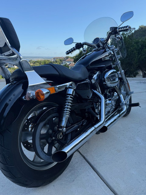 Upgrades include Python mufflers/exhaust; quick connect low profile windshield, Pegasus solo seat and passenger seat; sissy bar, back rest, and luggage rack.