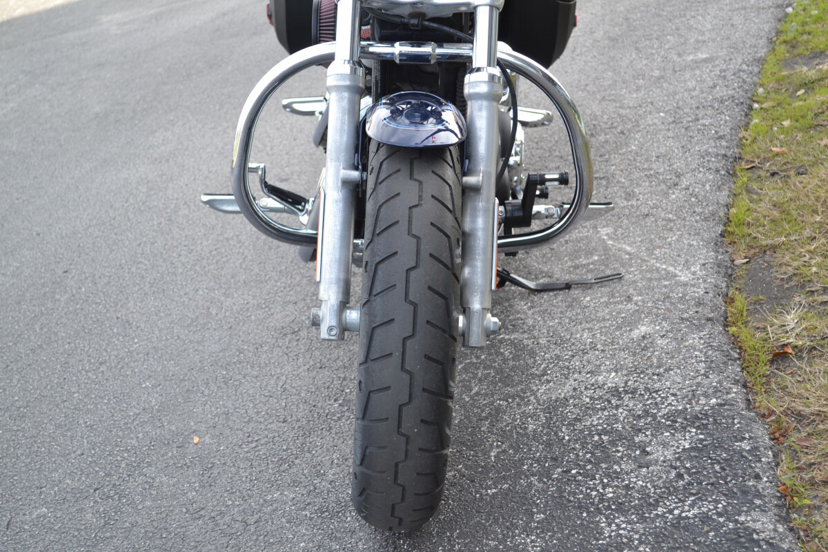 A wide front end and chunky 16-inch tire give the new Harley-Davidson 1200 Custom a strong and contemporary stance. Introduced as a mid-year addition to the 2012 Harley-Davidson model line-up, the 1200 Custom features new wheels, a pull-back handlebar, and a reshaped LED tail lamp. While these elements combine to give the 1200 Custom an exciting new look, the 1200 Custom also debuts H-D1 factory customization, a new opportunity that allows the customer to choose from seven option categories to optimize fit, function and style. By selecting from available factory-installed wheels, handlebars, seats, paint, foot control position, security system, and engine finish, the customer can create a 1200 Custom that is a truly personalized motorcycle. The 1200 Custom offers a new look but is Sportster to the core, while offering a combination of bold styling, nimble handling and the irresistible beat of American V-Twin performance.