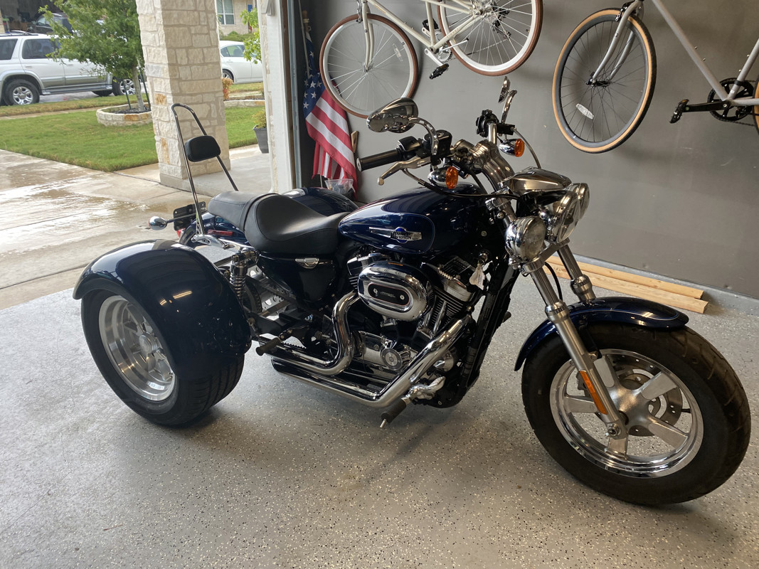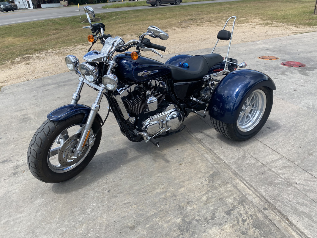 2012 Harley Davidson sportster 1200 Frankenstein trike conversion with stage two kit and screaming eagle pipes. This bike is an excellent condition.