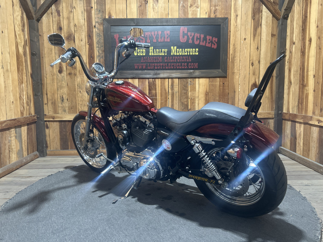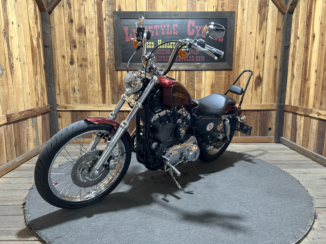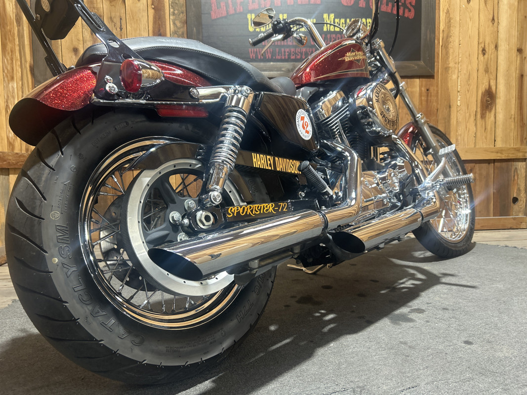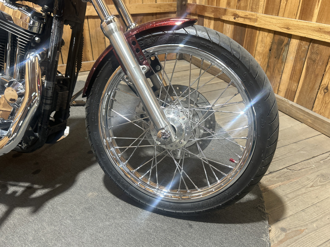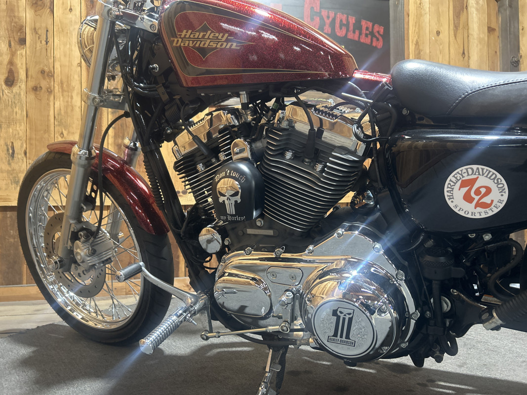 * Harley OEM Big Red Flake Paintjob * 1200 CC Sportster Evolution Motor * 5 Speed Transmission * Black Detachable Sissy Bar * Two-Up Seat * Forward Controls * 12-Inch Chrome Handlebars * 21-inch Front and 16-Inch Rear Chrome Spoke Wheels * Dual Chrome Exhaust with Slash-Cut Style Ends * Stock Air Cleaner with Chrome Cover
