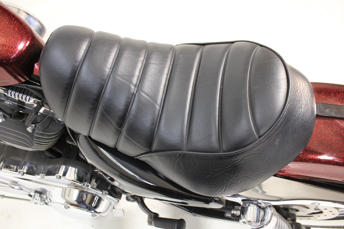 This bare-bones radical custom brings authentic '70's chopper attitude with modern power and lowrider inspired premium H-D® styling. The 2012 Harley-Davidson® Sportster® Seventy-Two™ XL1200V is a bare-bones radical custom. From front to rear, the Seventy-Two sports a bold, vintage look that recalls classic bobbers and the styling of 1970's choppers. With its big flake paint, peanut tank, round retro-style air-cleaner cover, ape-hanger handlebars and brilliant whitewalls, the Sportster Seventy-Two boasts a one-of-a-kind custom style that's full of attitude. The Seventy-Two is uniquely priced to be an incredibly attractive value. No other bike in its class offers so much no-nonsense retro attitude and modern high-end style at such affordable cost. The Harley Seventy-Two is a masterful mix of vintage bobber and contemporary retro-chopper styling. Its powerful Evolution® engine gives it impressive road muscle. The XL1200V's big-flake paint on the fuel tank is eye-catching, expressive, and of the highest Harley-Davidson quality. Forward-mounted controls make the Seventy-Two XL1200V comfortable for cruising across town. The Vance and Hines Pipes give this bike a bark that makes people to set up and notice. It put a grin on my face!