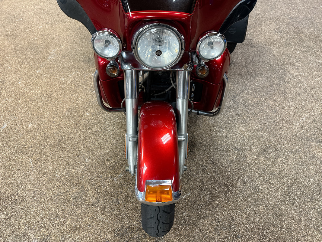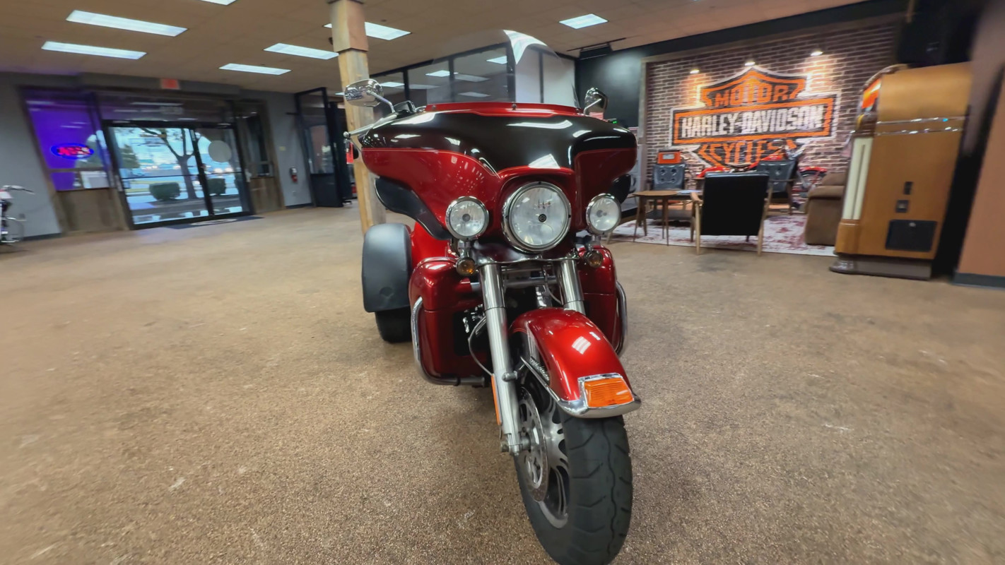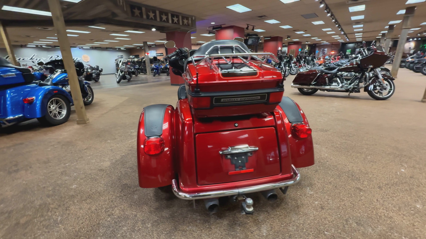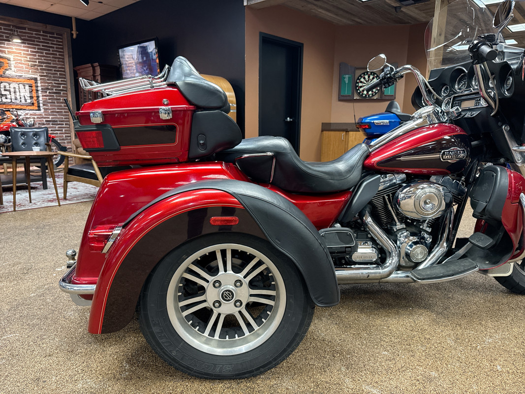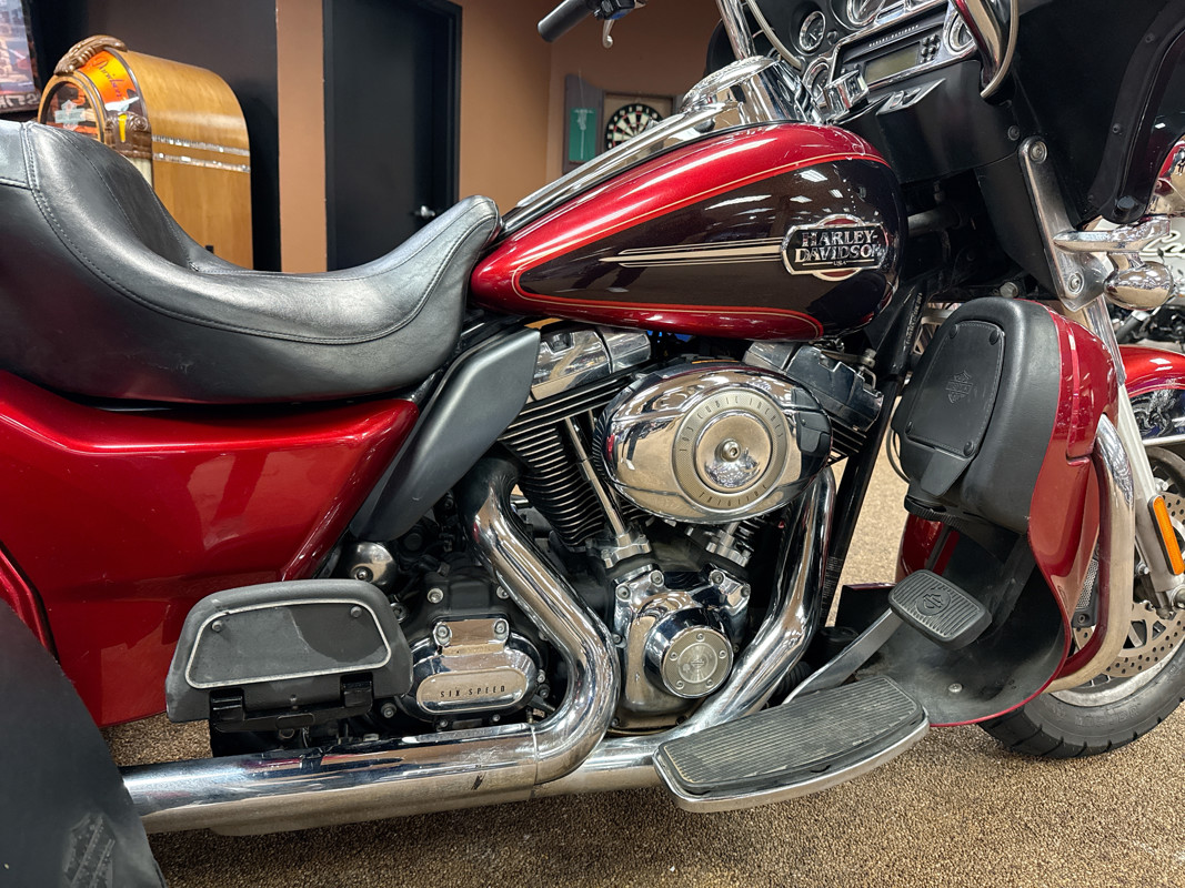 The 2012 H-D Tri Glide Ultra Classic is a stunning used trike that combines the classic appeal of Harley-Davidson with the stability and comfort of a three-wheeled design. This particular model is a head-turner with its striking EMBR Red/Merlot exterior, beautifully accented with pinstriping. With only 11,000 miles on the odometer, this trike is in excellent condition and ready for many more adventures on the open road.