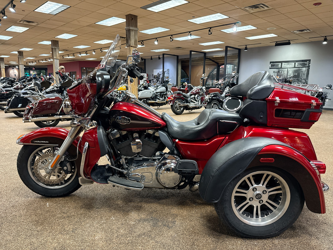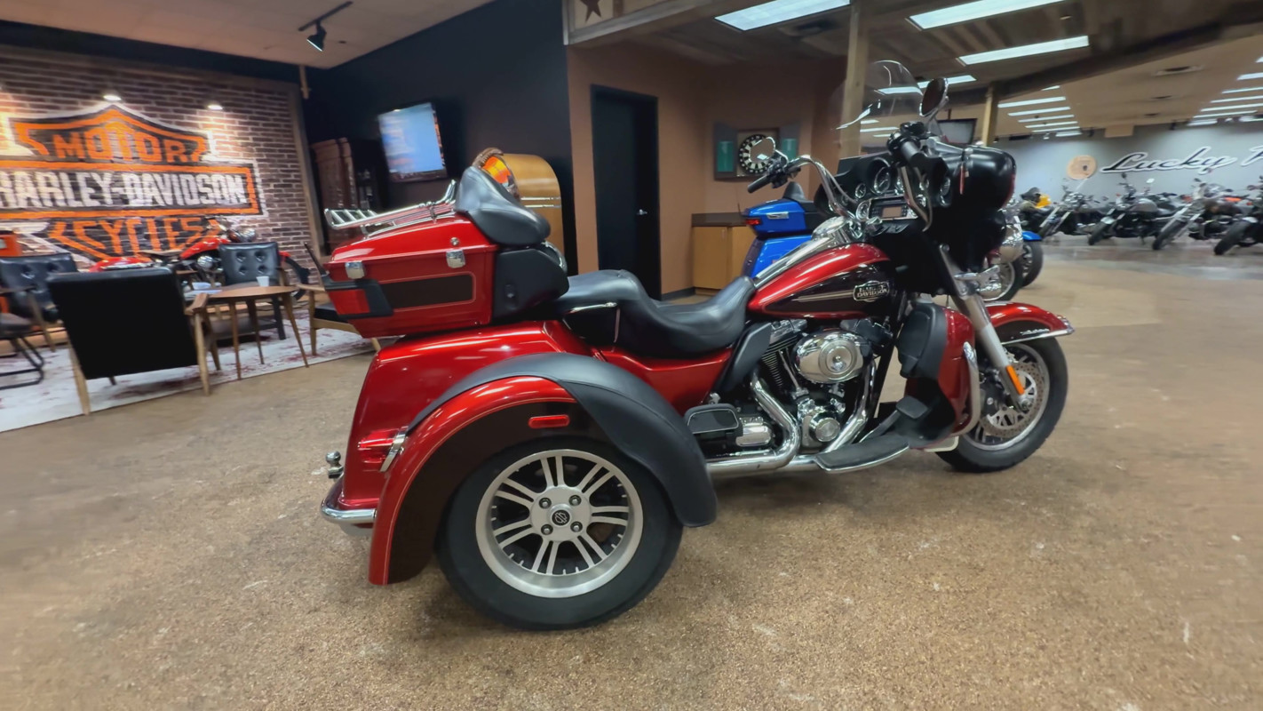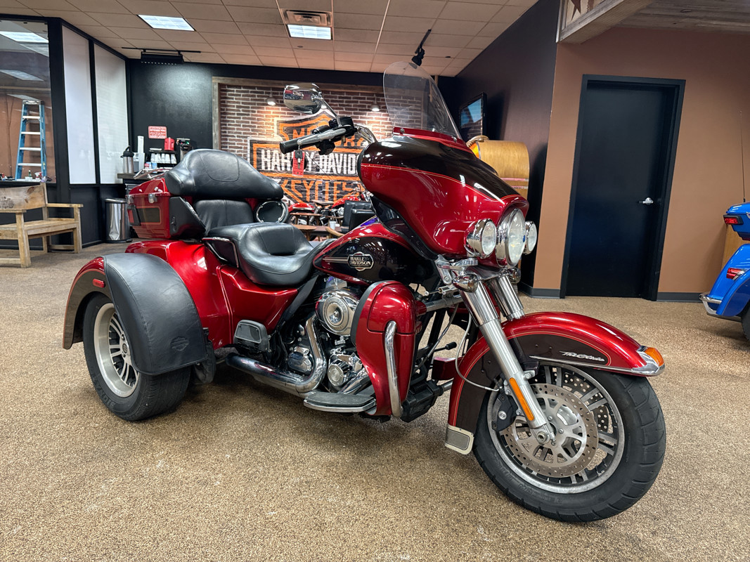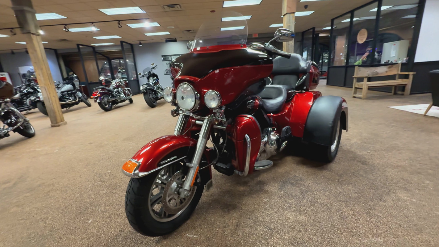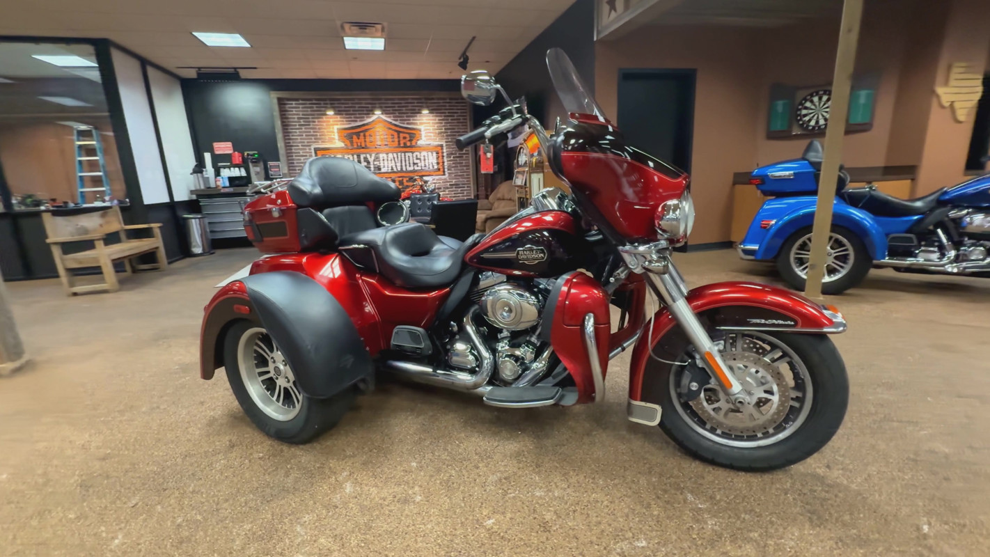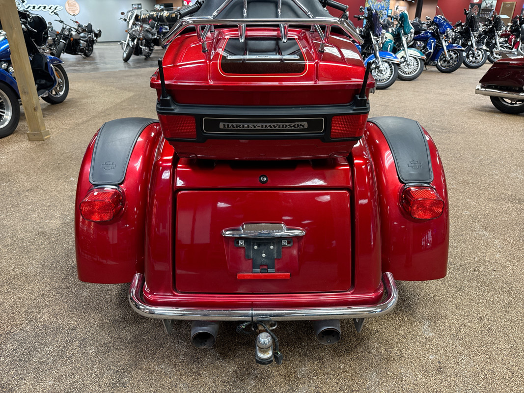 The 2012 H-D Tri Glide Ultra Classic is a stunning used trike that combines the classic appeal of Harley-Davidson with the stability and comfort of a three-wheeled design. This particular model is a head-turner with its striking EMBR Red/Merlot exterior, beautifully accented with pinstriping. With only 11,000 miles on the odometer, this trike is in excellent condition and ready for many more adventures on the open road.