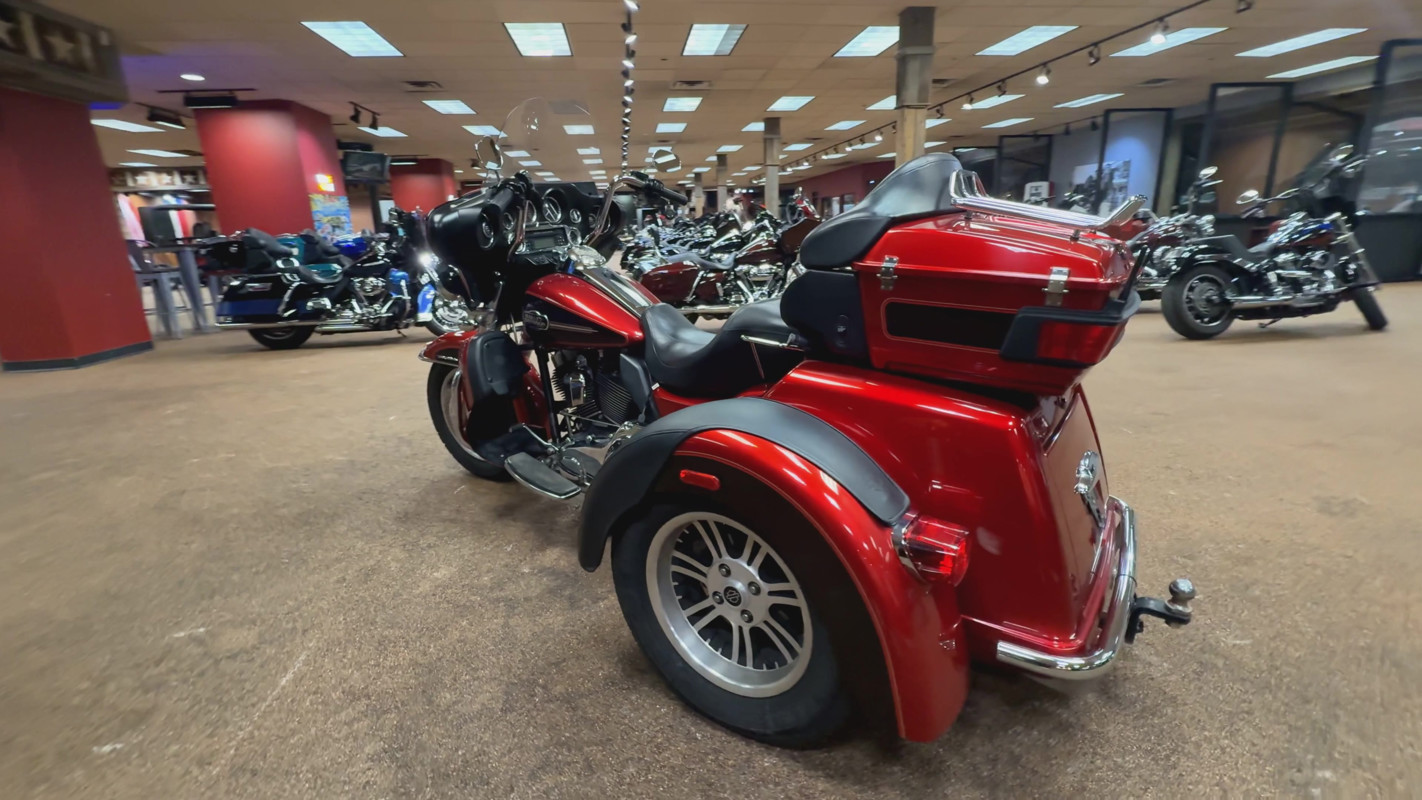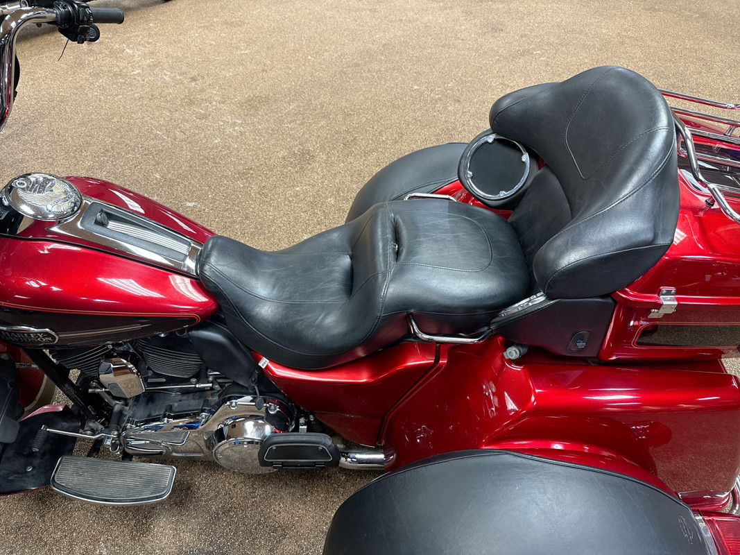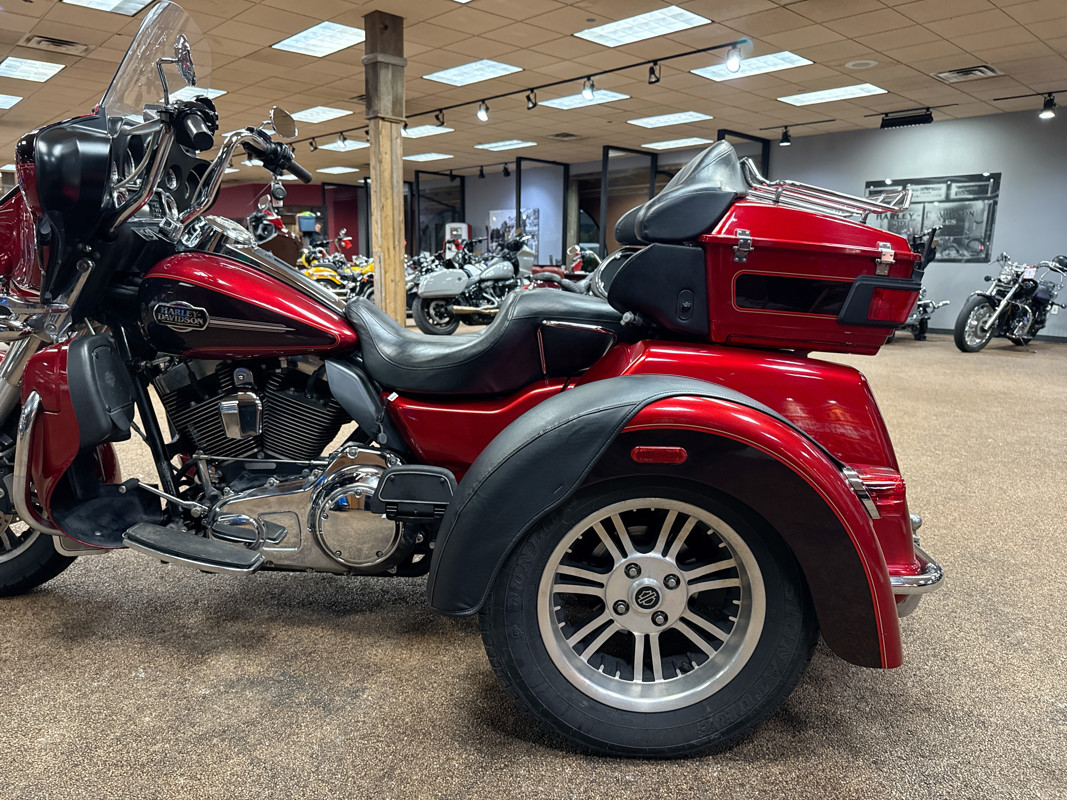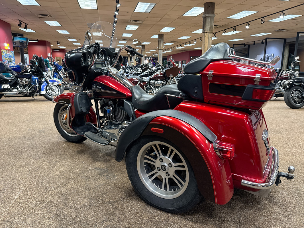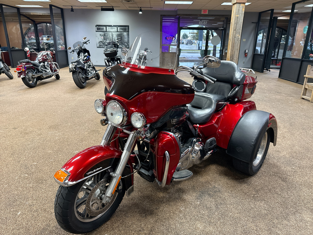 The 2012 H-D Tri Glide Ultra Classic is a stunning used trike that combines the classic appeal of Harley-Davidson with the stability and comfort of a three-wheeled design. This particular model is a head-turner with its striking EMBR Red/Merlot exterior, beautifully accented with pinstriping. With only 11,000 miles on the odometer, this trike is in excellent condition and ready for many more adventures on the open road.