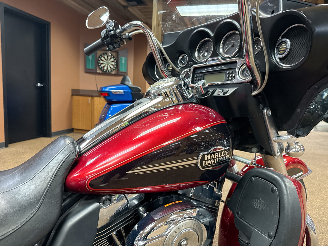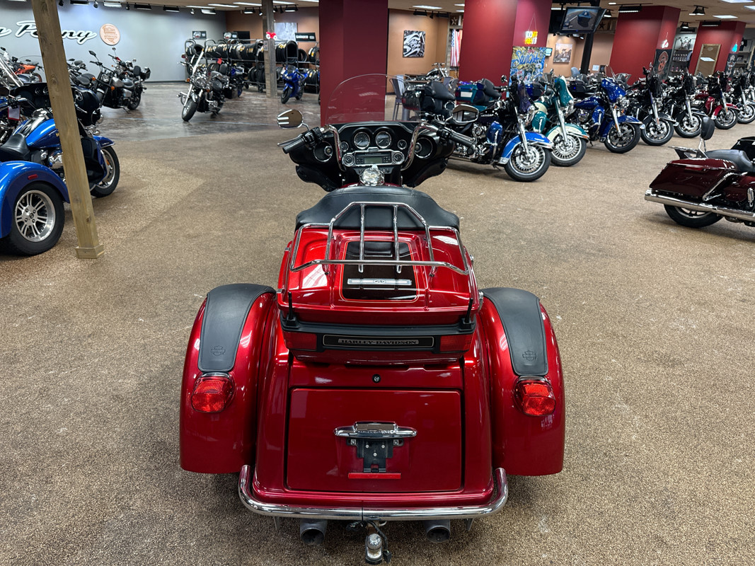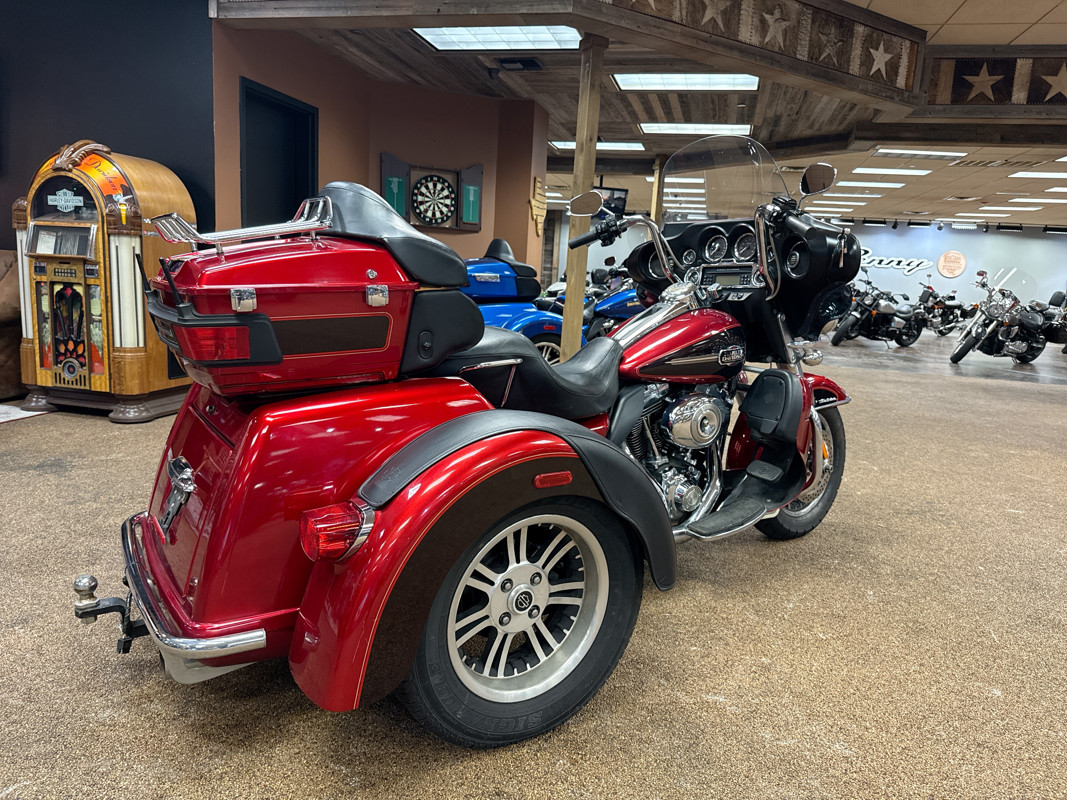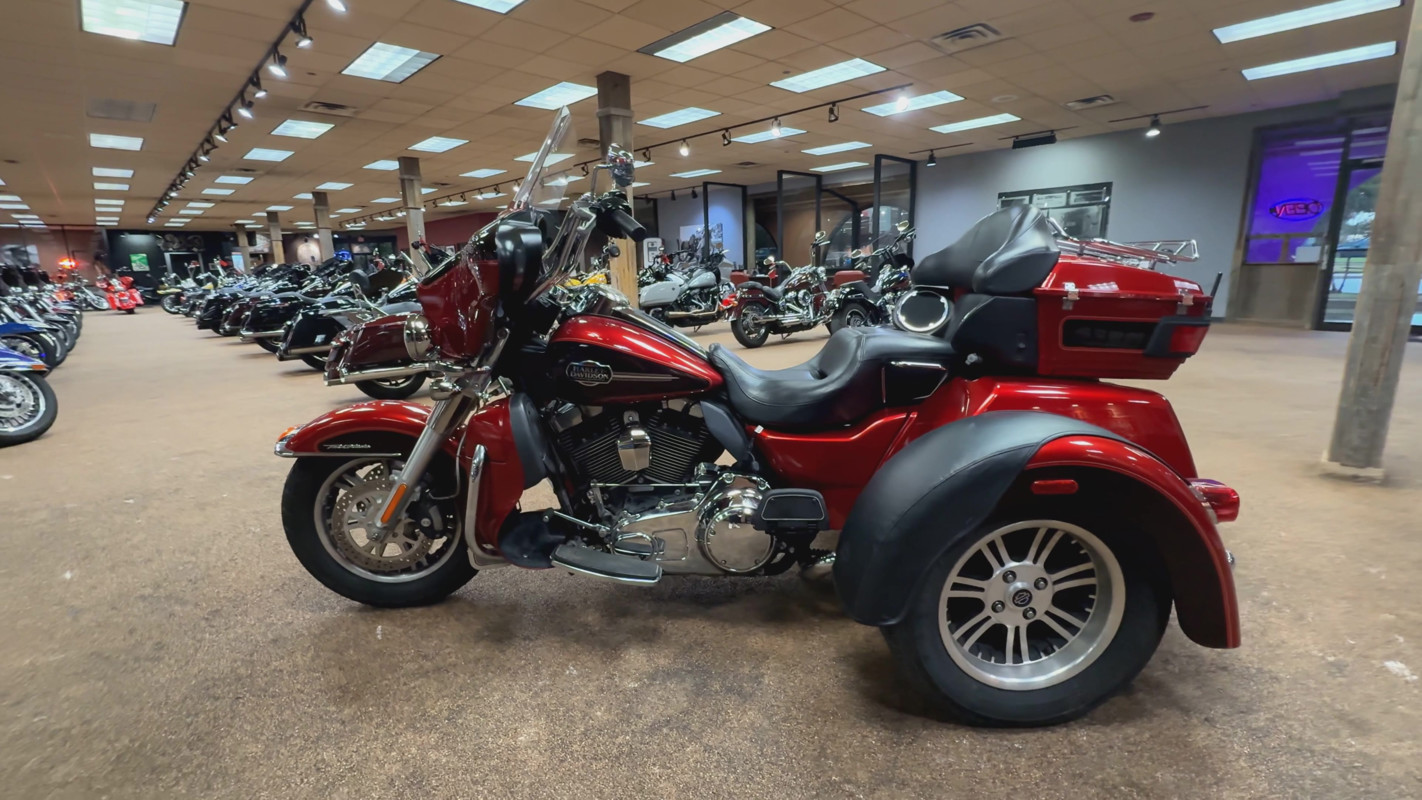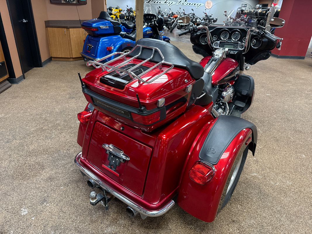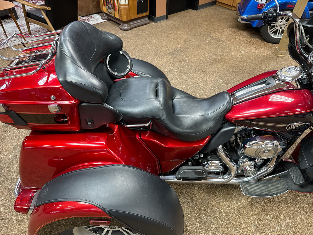 The 2012 H-D Tri Glide Ultra Classic is a stunning used trike that combines the classic appeal of Harley-Davidson with the stability and comfort of a three-wheeled design. This particular model is a head-turner with its striking EMBR Red/Merlot exterior, beautifully accented with pinstriping. With only 11,000 miles on the odometer, this trike is in excellent condition and ready for many more adventures on the open road.