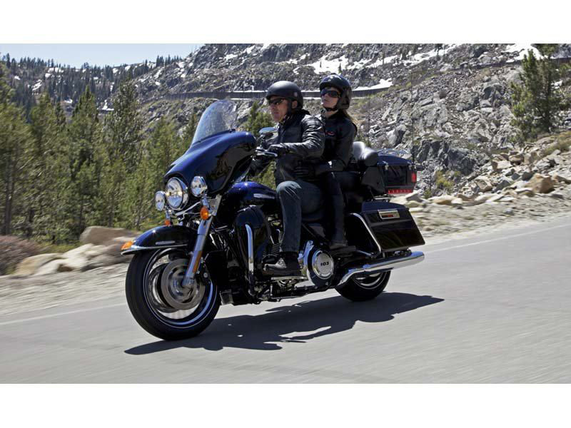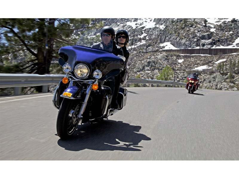 This limited model comes fully-loaded to ride a step above the rest on all the miles ahead. The 2013 Harley-Davidson® Electra Glide® Ultra Limited model FLHTK is a premium featured touring bike full of authentic Harley-Davidson Grand American Touring style. For 2013, the Electra Glide Ultra Limited model comes in a limited, serialized 110th Anniversary Special Edition, featuring exclusive commemorative anniversary styling elements and premium features that make it a top-of-the-line model and a true work of living art, with finely forged finishes that age and transform in a manner unique to each vehicle. Some of the bike's premium features include: air-cooled Twin Cam 103™ engine for powerful performance, ABS brakes, heated hand grips, titanium face gauges, Tour-Pak® inserts, a premium Tour-Pak luggage rack, 28-spoke contrast chrome wheels, and special Ultra Limited identifier medallions. Also found on the Harley® Electra Glide Ultra touring bike is a 6 gal. fuel tank so you have to stop less for fuel. Harley has many other motorcycle touring bikes, all to provide you with comfort and style. Be sure to look at the Road Glide® Ultra with its frame-mounted Harley fairing for your motorcycle travel as well as all of the other H-D® touring motorcycles. Check out some other Harley-Davidson motorcycles such as the Night Rod® Special motorcycle cruiser, the V-Rod Muscle® power motorbike, or the Softail® Deluxe motorcycle cruiser.