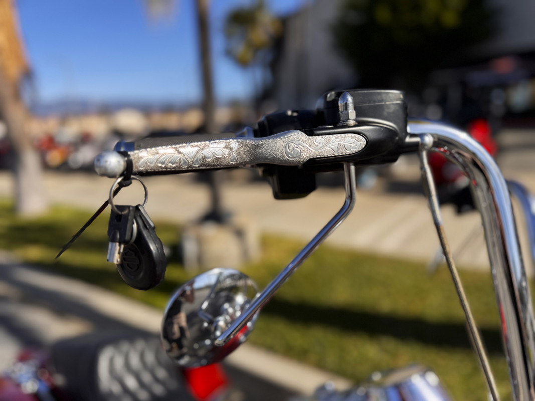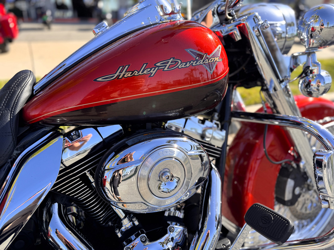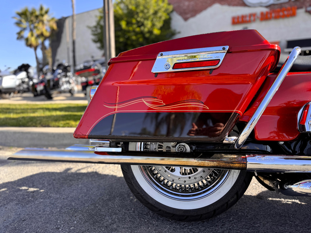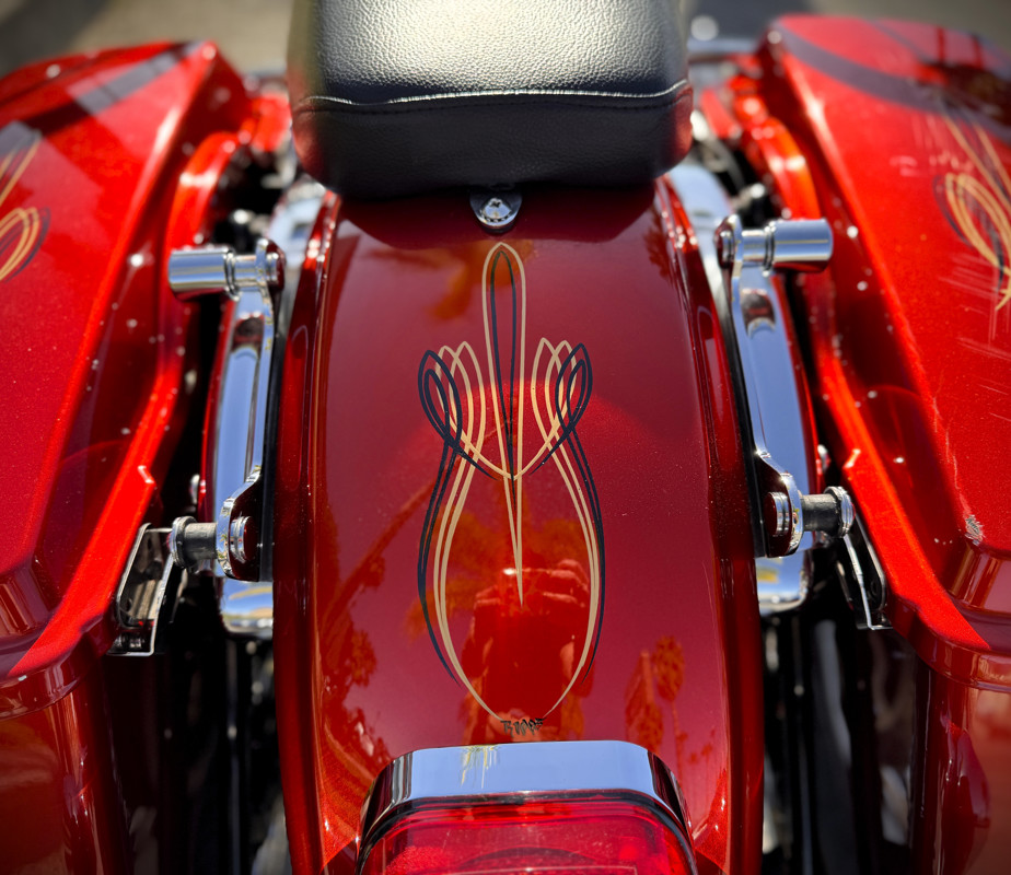 Twin Cam 103™, long custom exhaust, custom floorboards & levers, lowered mirrors, spoke front wheel, passenger docking hardware.