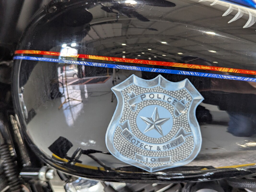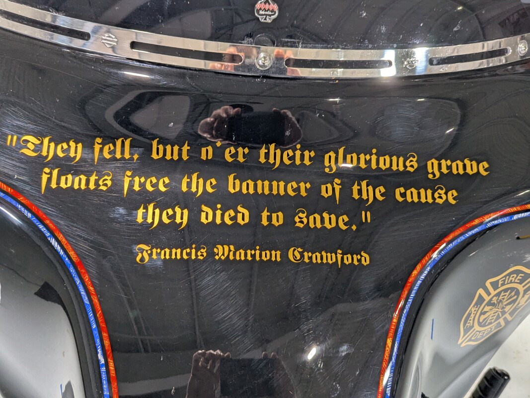 FIRST RESPONDERS CUSTOM PAINT~~POLICE FIRE RESCUE MARINES~~VH BIG RADIUS PIPES~~LEDS~~AQUATIC RADIO~~SADDLE BAG SPEAKERS~~MUSTANG SEAT
