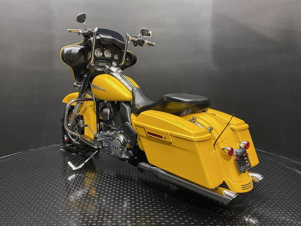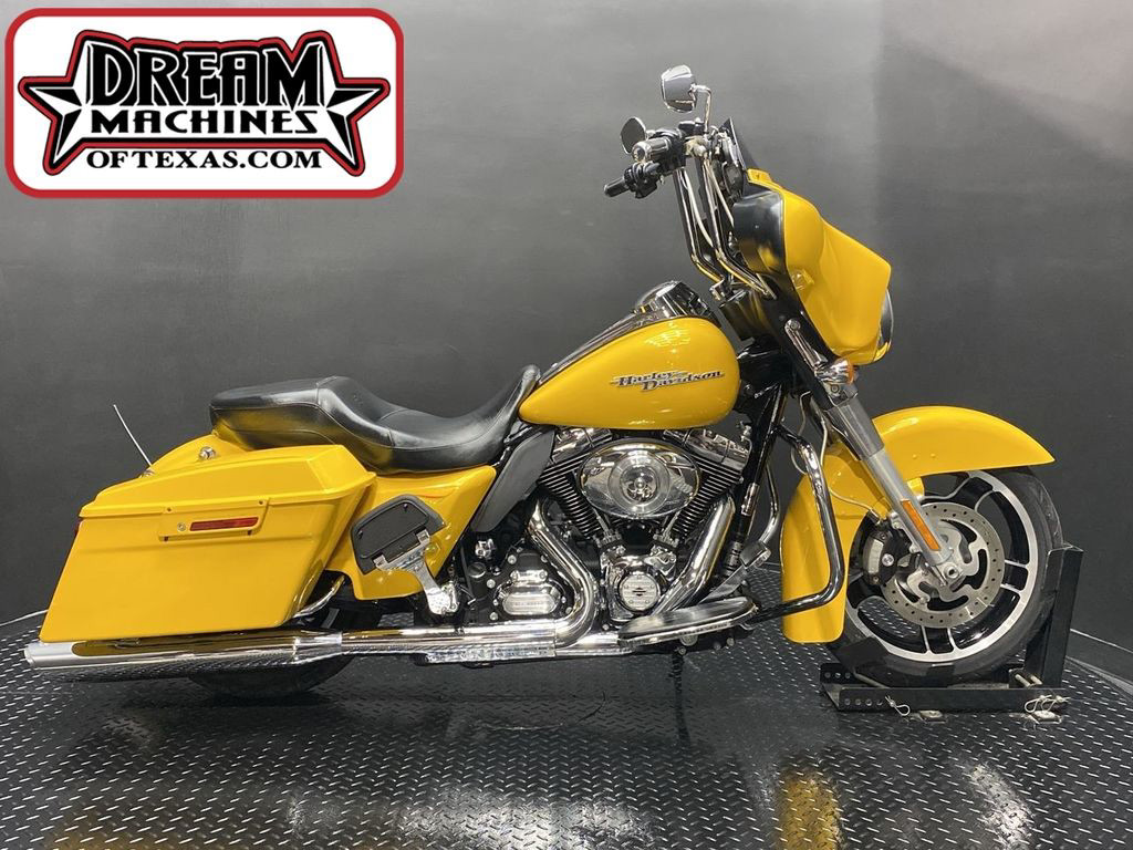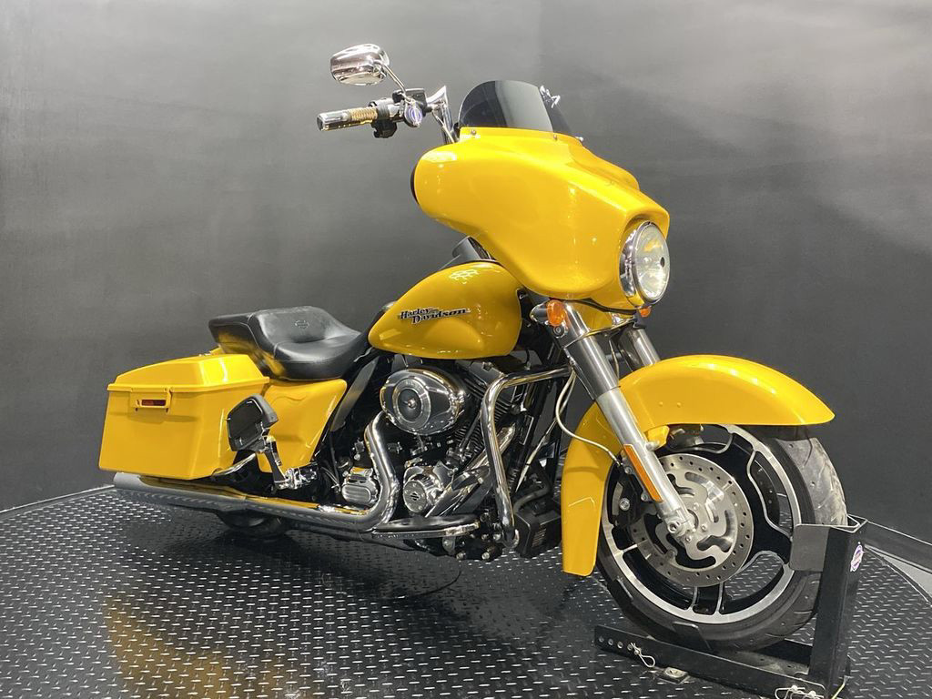 AIR BAGS DO NOT WORK YOU ARE LOOKING AT A 2013 HARLEY DAVIDSON STREET GLIDE (FLHX) WITH 42,711 MILES ON IT. IT IS CHROME YELLOW PEARL IN COLOR AND POWERED BY A 1690CC (103") FUEL INJECTED ENGINE AND 6 SPEED TRANSMISSION. THE BIKE COMES WITH CRUISE CONTROL, 1 KEY, 1 FOB, AND FACTORY SECURITY SYSTEM. THERE ARE SOME EXTRAS ON THE BIKE WHICH INCLUDE VANCE & HINES SLIP-ON MUFFLERS ($424.95), SUNDOWNER SEAT ($379.95), PASSENGER FLOORBOARDS ($264.95), 3 POCKET WINDSHIELD POUCH ($99.95), APE HANGER BARS ($1,500 INSTALLED), AND HEATED GRIPS ($319.95). THE BIKE HAS A SMALL IMPRESSION AND TOUCHUPS ON THE FRONT FENDER, TOUCHUPS ON THE SADDLEBAGS, AND REAR FENDER. THE CHROME AND ALUMINUM ARE IN GOOD CONDITION WITH THE EXCEPTION OF SCRATCHES ON THE ENGINE GUARD. THE TIRES HAVE GOOD TREAD LEFT ON THEM.