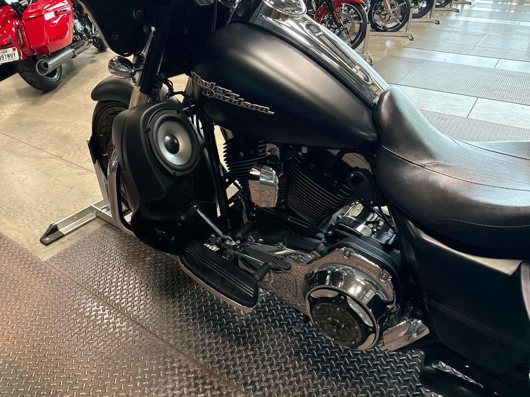 The exterior of this Street Glide is finished in a captivating Black Denim color, adding to its sleek and authentic aura. The dark tones of the paintwork perfectly complement the rebellious spirit of this iconic touring bike.
