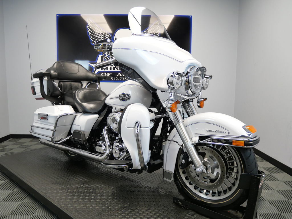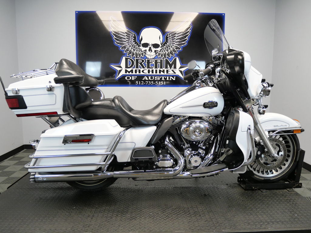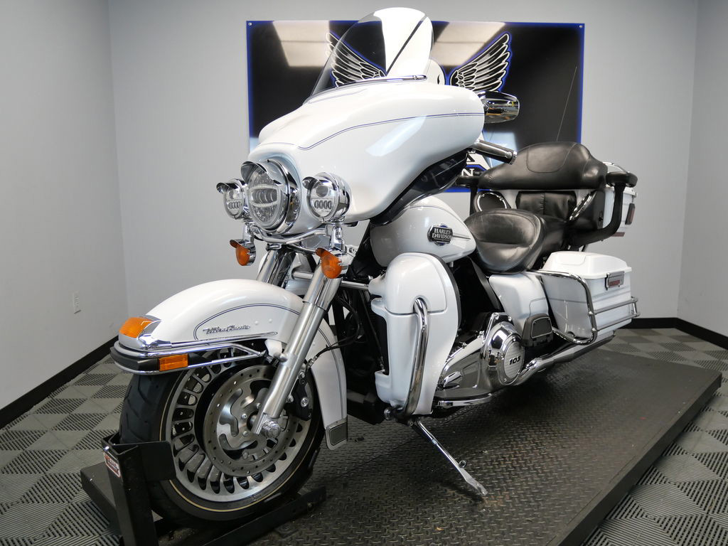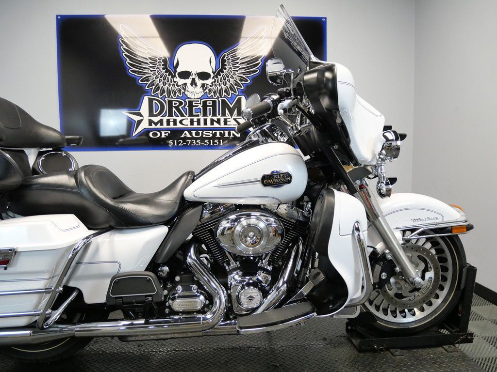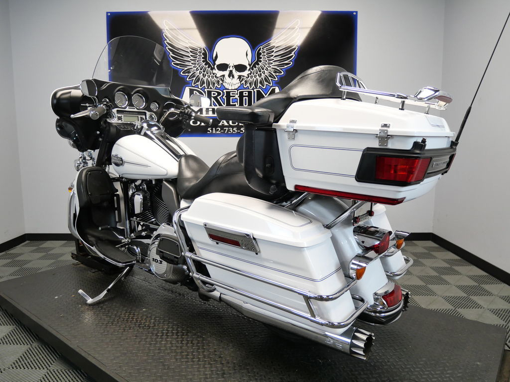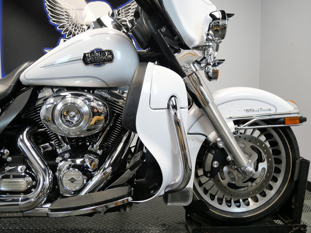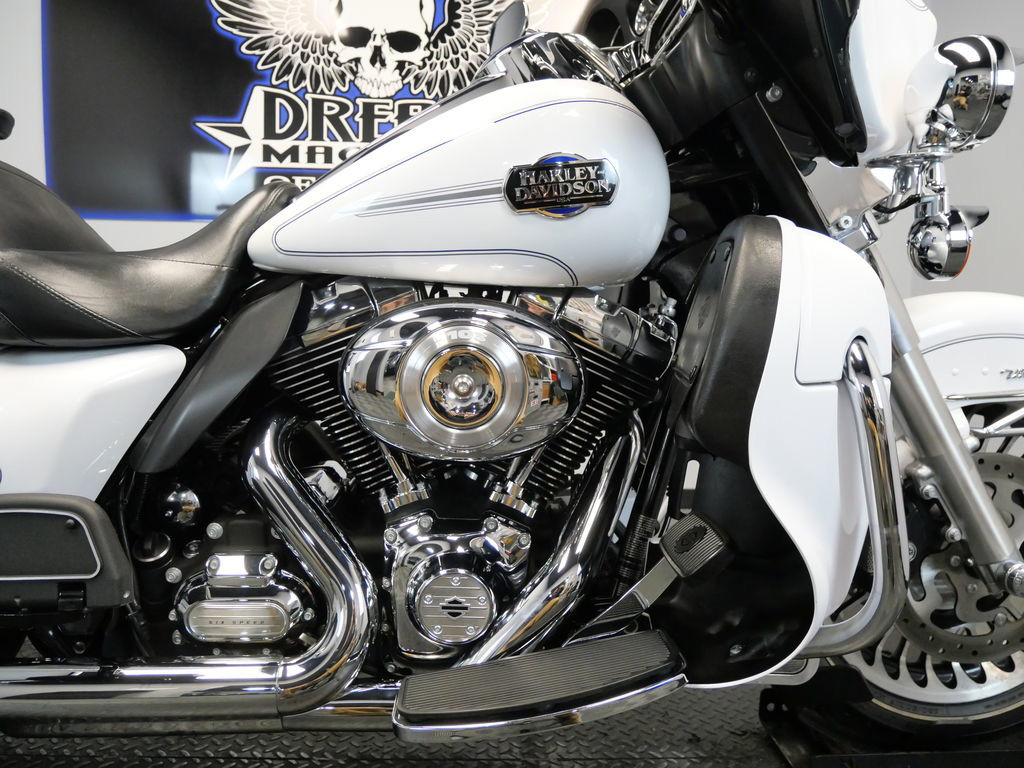 *BOOK VALUE IS $12,604 SHIPPING, LEASING, FINANCING AND EXTENDED WARRANTY MAY BE AVAILABLE! YOU ARE LOOKING AT A 2013 HARLEY DAVIDSON ELECTRA GLIDE ULTRA CLASSIC (FLHTCU) WITH 46,595 MILES ON IT. IT IS WHITE HOT PEARL IN COLOR AND POWERED BY A 1690CC (103") FUEL INJECTED ENGINE AND 6 SPEED TRANSMISSION. THE BIKE COMES WITH CRUISE CONTROL AND 1 KEY. THERE ARE SOME EXTRAS ON THE BIKE WHICH INCLUDE RC XHAUST SLIP-ON MUFFLERS ($699.95), STAGE 1 AIR INTAKE ($139.95), LED HEADLIGHT ($399.95), LED PASSING LAMPS ($199.95), PASSENGER ARMREST ($404.95), LUGGAGE RACK ($124.95), GRIPS ($79.95), AND WINDSHIELD MOLDING ($44.95). THERE ARE NO SCRATCHES, DENTS, OR DINGS THAT I CAN FIND. THE CHROME AND ALUMINUM ARE IN GOOD CONDITION. THE TIRES HAVE GOOD TREAD LEFT ON THEM.